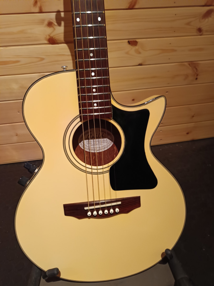 Vendo guitarra acústica Guild Songbird Thinline, años 90. Está impecable. Color hueso. Modelo diseñado para Barry Gibb de Bee Gees y Slash de Guns N'Roses. Sonido precioso. Funda original. No hago cambios. Probar en Madrid