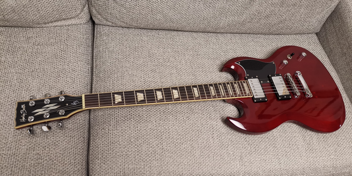 Por no usar desde hace tiempo, vendo la clásica guitarra Harley Benton DC-Custom Cherry comprada en Thomann en el 2020
