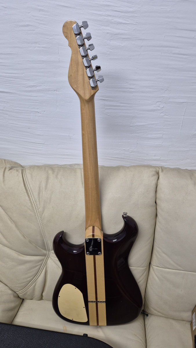Tambien cambio, guitarra double cut de la factoría de Gakki Japón, supuestamente de la década de los 70. Creo que en algún momento se le cambió el logo de la pala, porque no he encontrado nada por esta marca pero sí de otras similares, solton, cortez... Todas andan por los 350 aprox así que la pongo a ese precio. A mi me parece que tiene buena madera y electrónica mejorable, pero es algo subjetivo. Me llegó de un cambio y me planteé quedármela y mejorarle la electrónica, y hasta hoy, ya he asumido que no la voy a usar y es una pena.