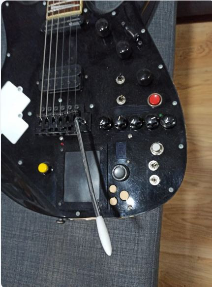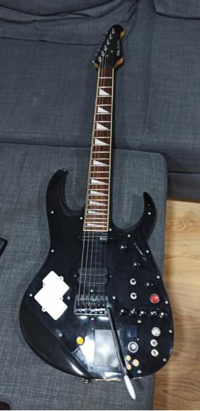 La guitarra base es una iaxe behringer. Necesita de 4 pilas AAA