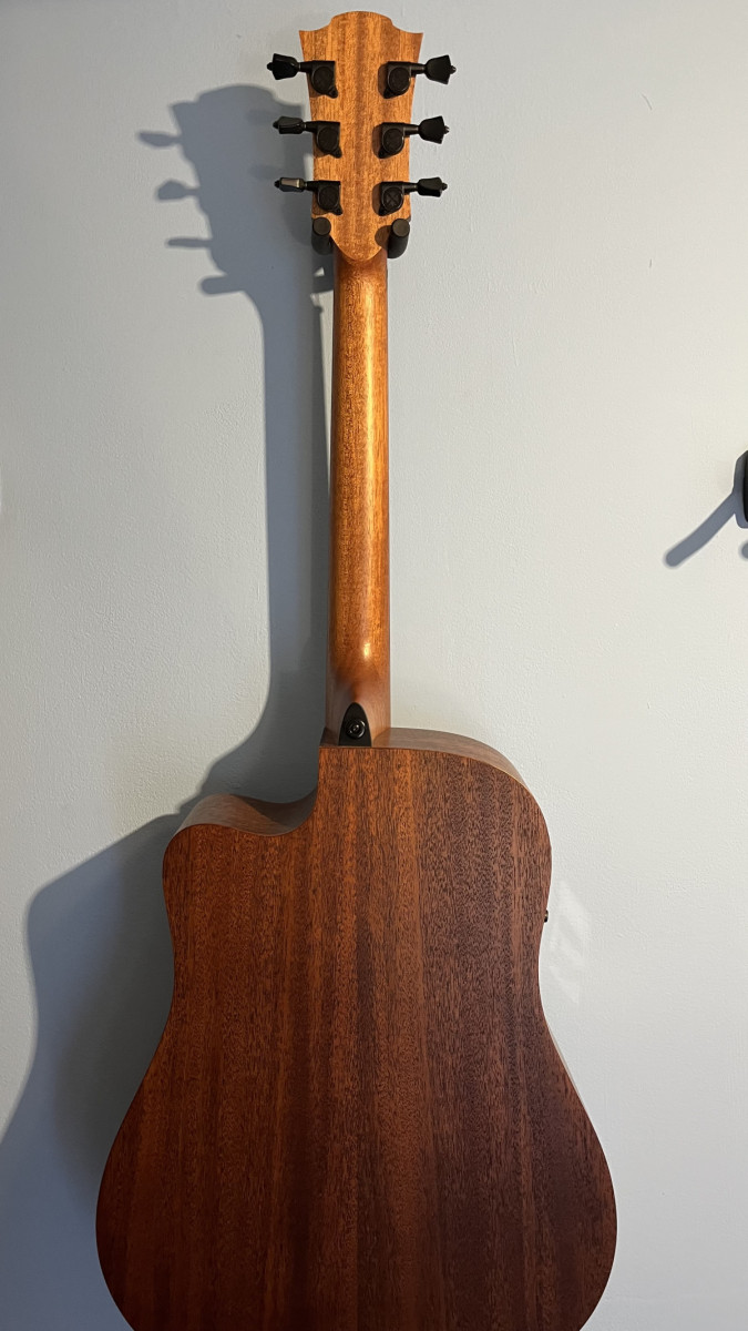 La guitarra de Lâg THV10DCE es una guitarra cómoda lleva tapa de cedro rojo sólido, que combina muy bien con el cuerpo de caoba Natural. El corte veneciano típico se abre a su mástil delgado y diapasón de Brownwood. Nueva costó 899 ESCUCHO OFERTAS RAZONABLES
