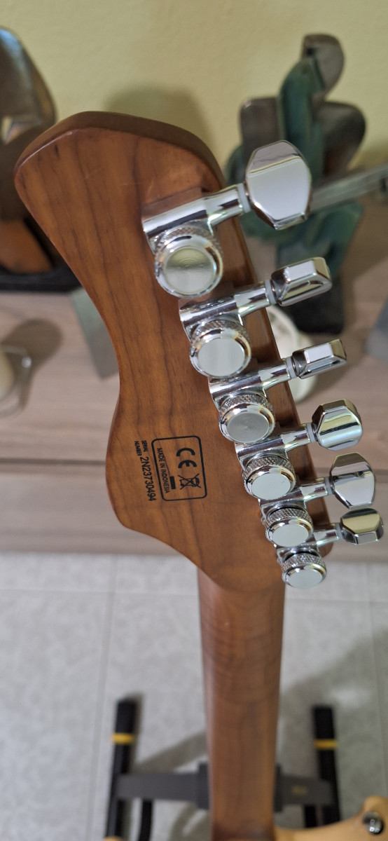 Cuerpo de aliso, mástil de arce tostado con forma de C y acabado satinado. Diapasón de palosanto con trastes redondeados. Radio diapasón 9'5. 22 trastes Medium Jumbo. Cejilla de hueso. Pastillas LC Super-V SSS. Clavijeros con bloqueo y golpeador de aluminio.