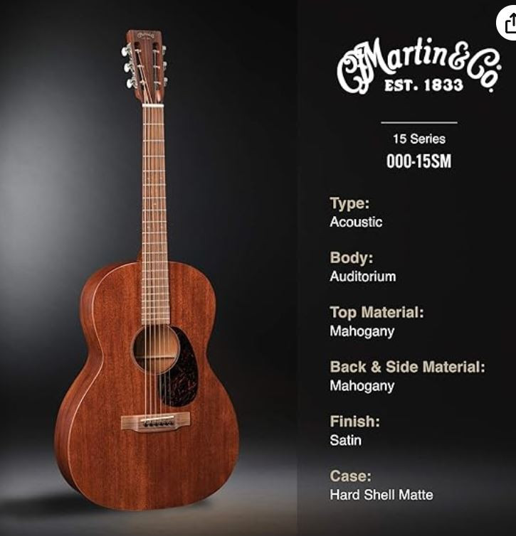 Acústica Martin con mástil de 12 freet tipo 000 y clavijero ranurado.