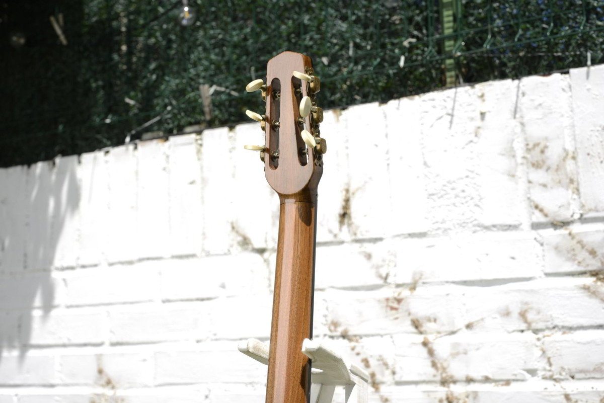 El afinador de la cuerda B tiene algo de holgura, pero funciona. Igualmente hay una fisura cerca del cabezal que arregló un luthier en Pau. Está igual que cuando la compré hace tres años, no me ha dado problemas. Maurice ha calificado la reparación como correcta igual que el estado general de la guitarra.