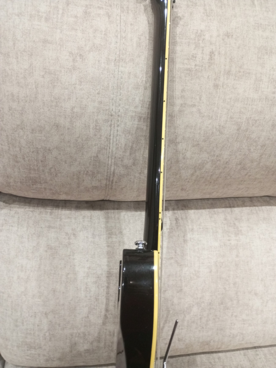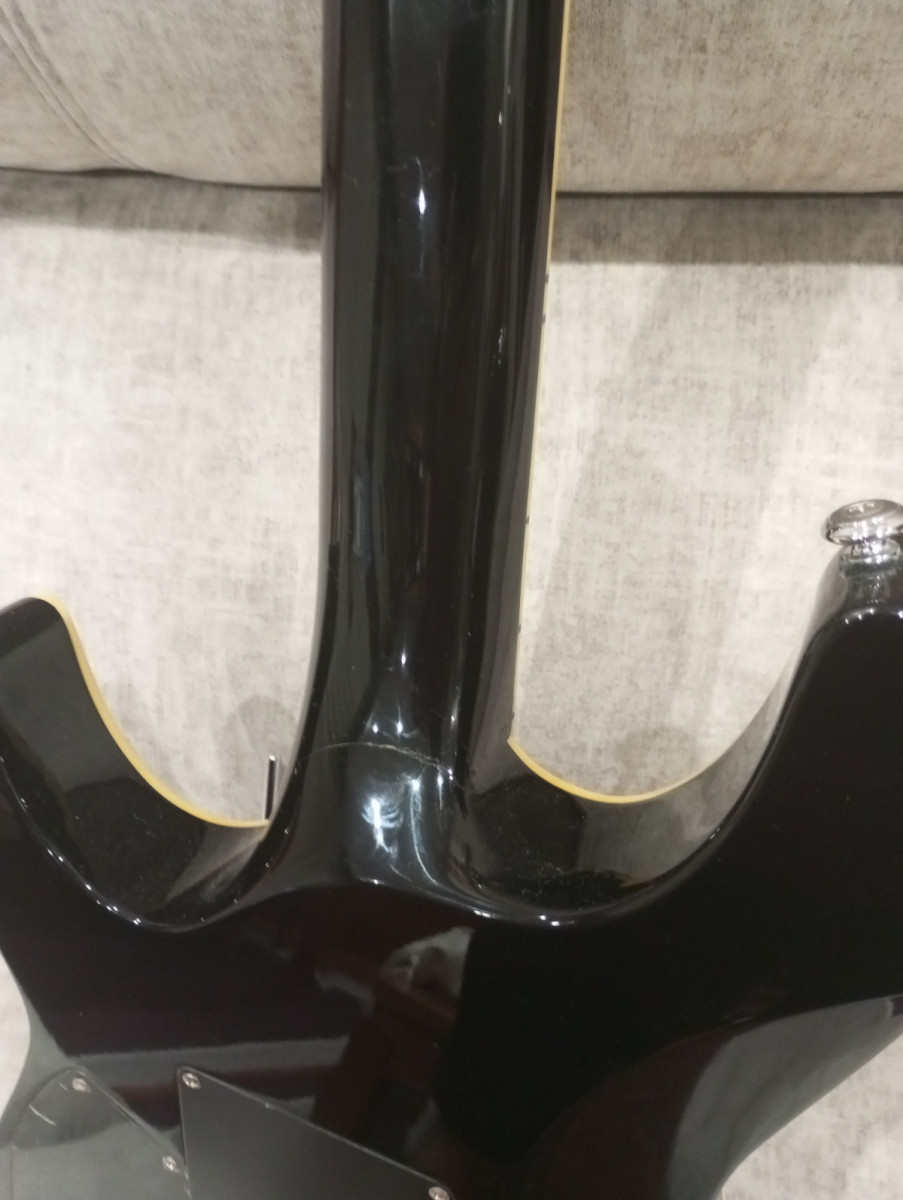 Tiene una grieta hace años en la unión del mástil, típico de este tipo de guitarras , de ahí su precio ( 300 MENOS )