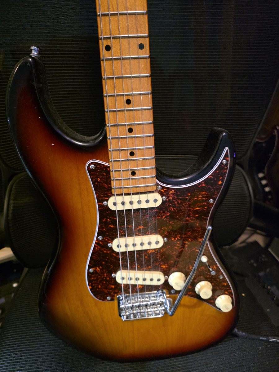Guitarra eléctrica Sire S5 con configuración SSS (tres pastillas single-coil).