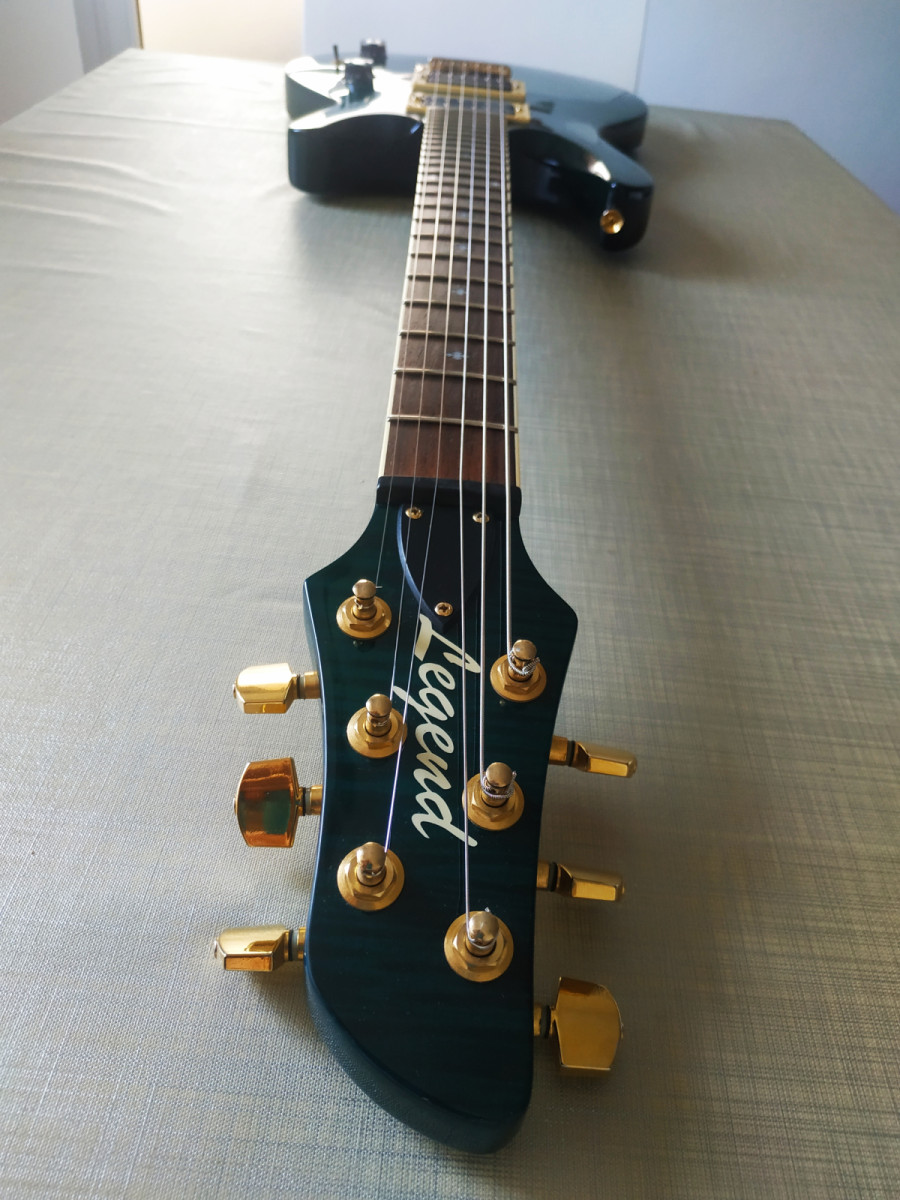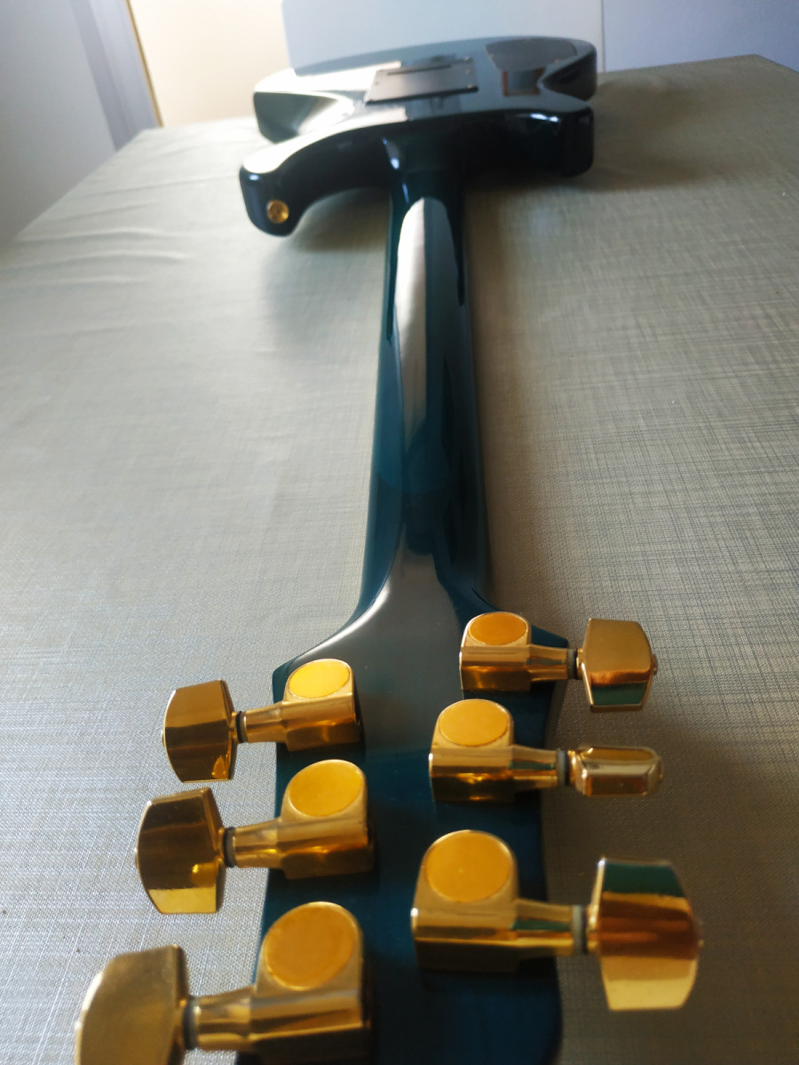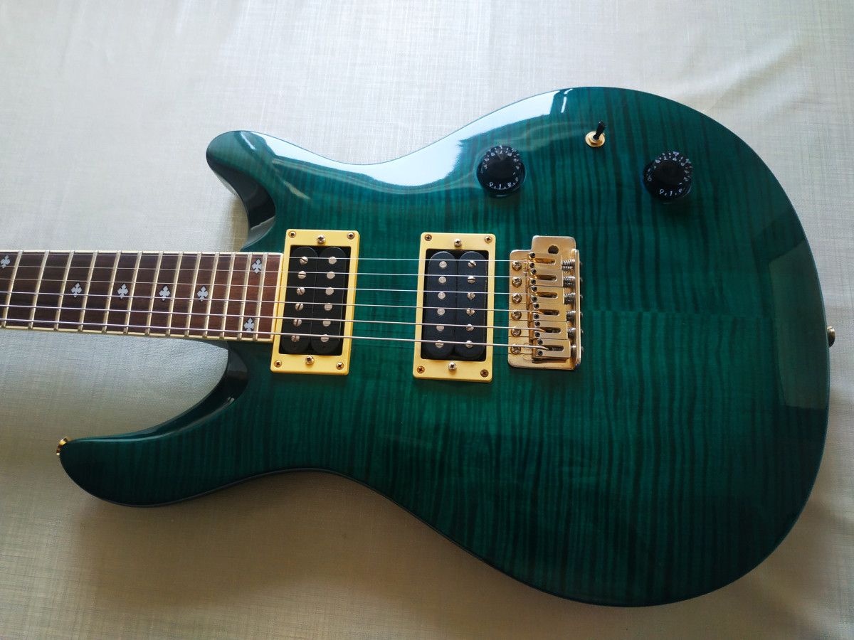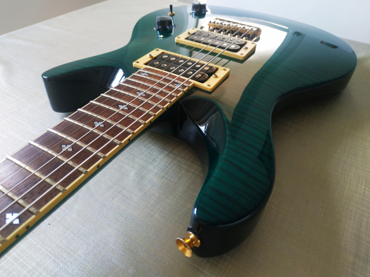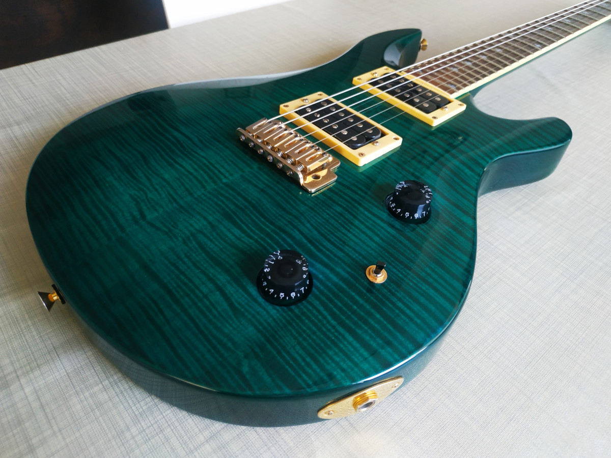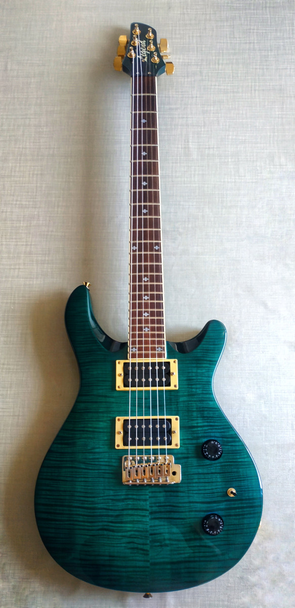 Preciosa guitarra eléctrica tipo PRS en acabado azul verdoso. Está en muy buen estado.
