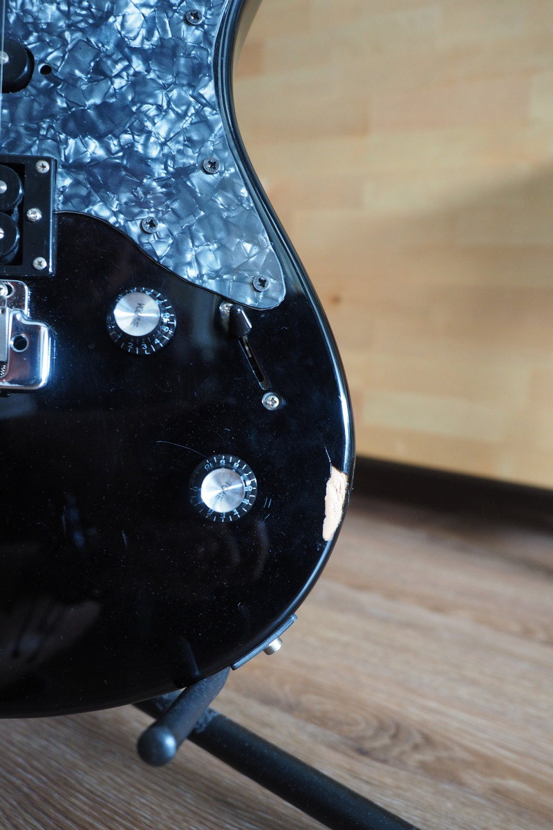 Destacar que el puente original se cambió por un Wilkinson WVP6 que mejora notablemente el tacto y el sonido, y se le instaló el golpeador que se ve en la foto. El resto es de origen.