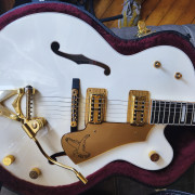 Sigo aligerando mi stock particular. Después de vender el Bassman, se vende esta preciosidad de colección; 6130, ojo, no 6120, serie Chet Atkins, (limitada); acabados de lujo, hasta hace juego el cuero el "lomo" de la guitarra con el nácar del diapas...2995€bandabAlbaceteel 28/10/2024