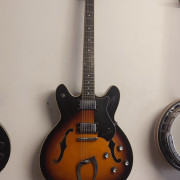 Tipo 335, una guitarra increíble para el precio en el que se vendía. Cómoda, estable en afinación y la mía está prácticamente nueva. Solo he hecho un bolo con ella, no tiene marcas ni golpes. Va con cierres de seguridad, correa y un estuche duro...500€faliMálagahace 16 horas