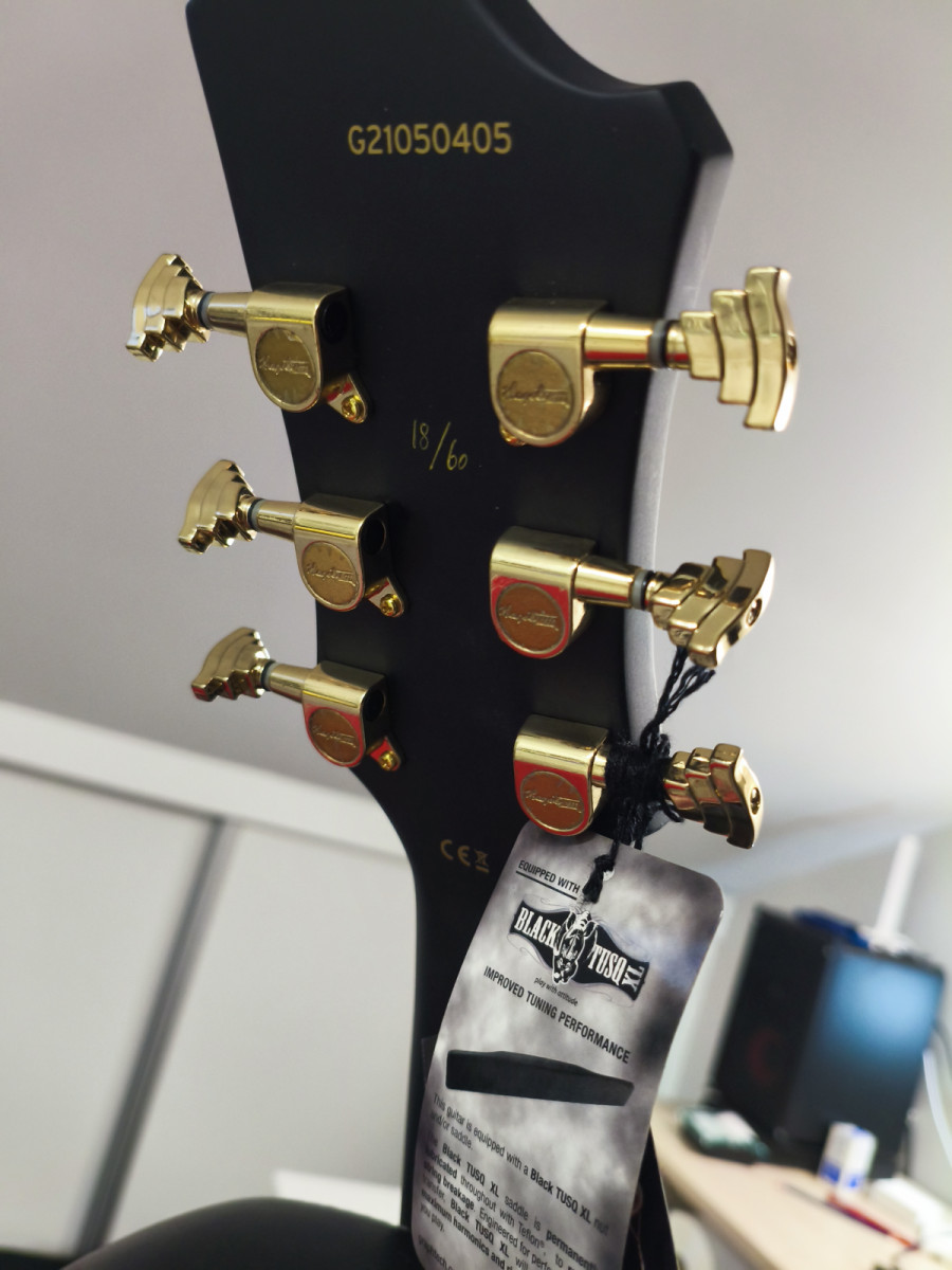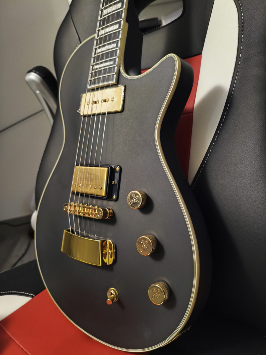 GUITARRA ELÉCTRICA SINGLE CUT Ultra Max LIMITED G-SBK P90/HB de edición limitada a 60 unidades. Con acabado negro satinado, herrajes dorados, funda incluida, cuerpo de caoba, pastilla humbucker con sistema split coil en puente y P90 en mástil, está como veis a estrenar.