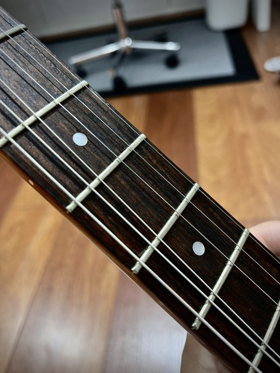 Toda su electrónica funciona perfectamente, los trastes están en excelente estado y no hay signos de desgaste estructural ni estético relevantes.