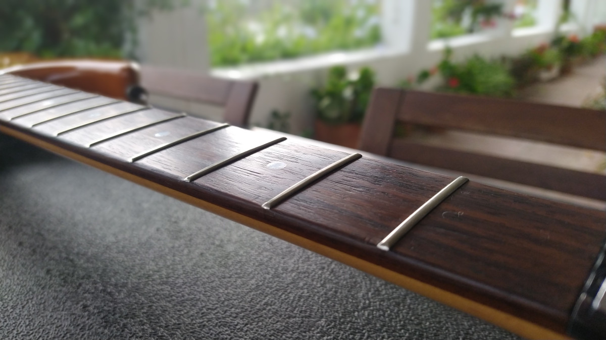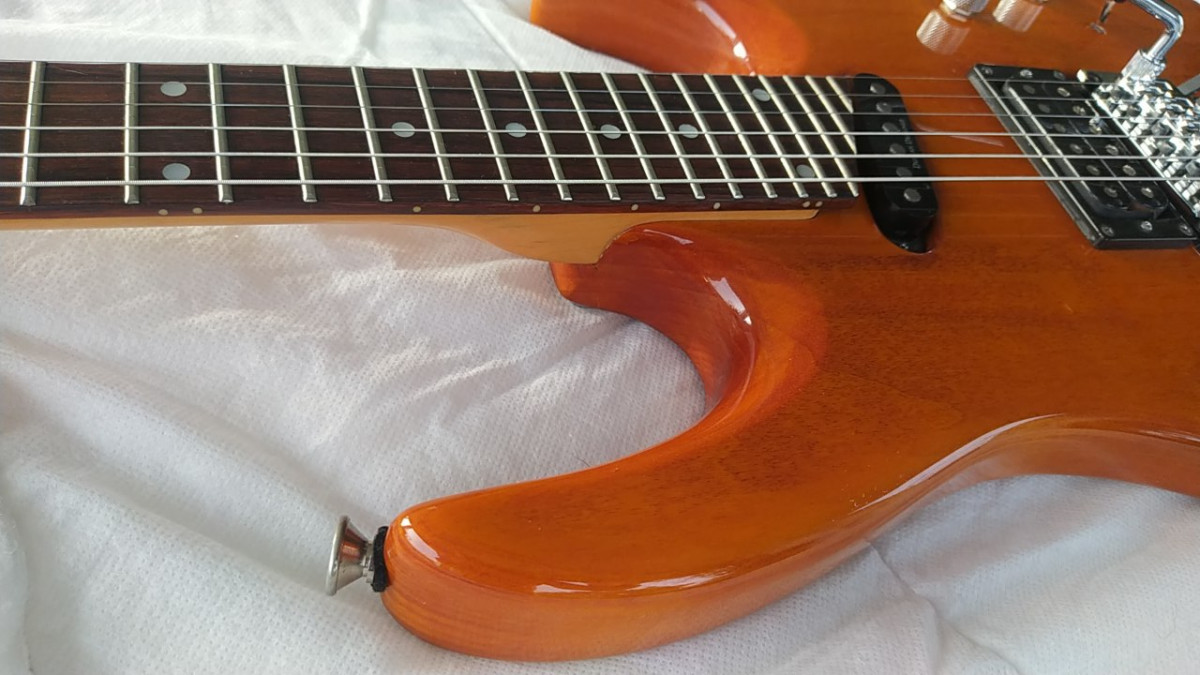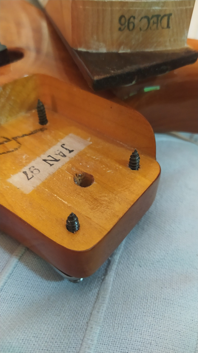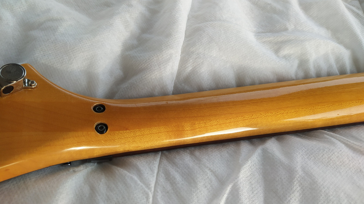 El estado de conservación es excelente como se puede observar en las fotos, así como el sonido y la capacidad de ajuste. El único desperfecto reseñable es un craquelado del barniz junto al conector jack, por suerte en el lugar menos visible.