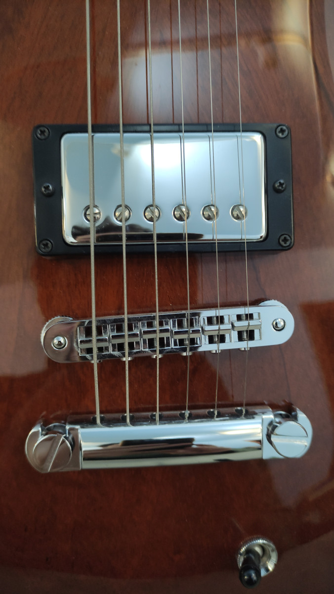 Cuerpo: ancho de 12,9", profundidad 2", madera de caoba