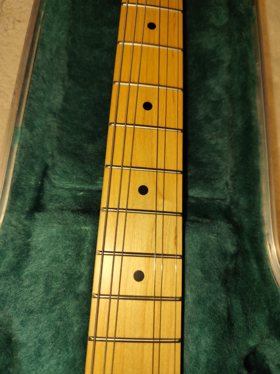 Como nueva. Sin golpes, arañazos ni reparaciones. Cuerdas nuevas Ernie Ball Hybrid Slinky 009-042. No dispongo de llaves. Envío bien protegida (mucha experiencia, mira mis reseñas). El estuche de las fotos ya no está disponible.