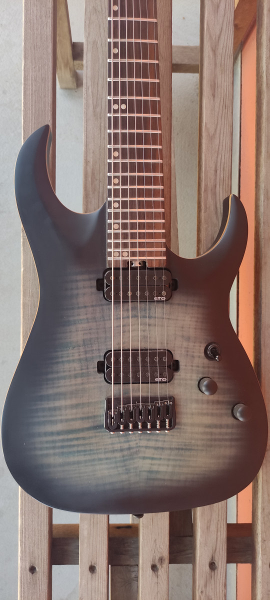 Modelo: Harley Benton Amarok‐7 BKNT (Flame Burst, satin)