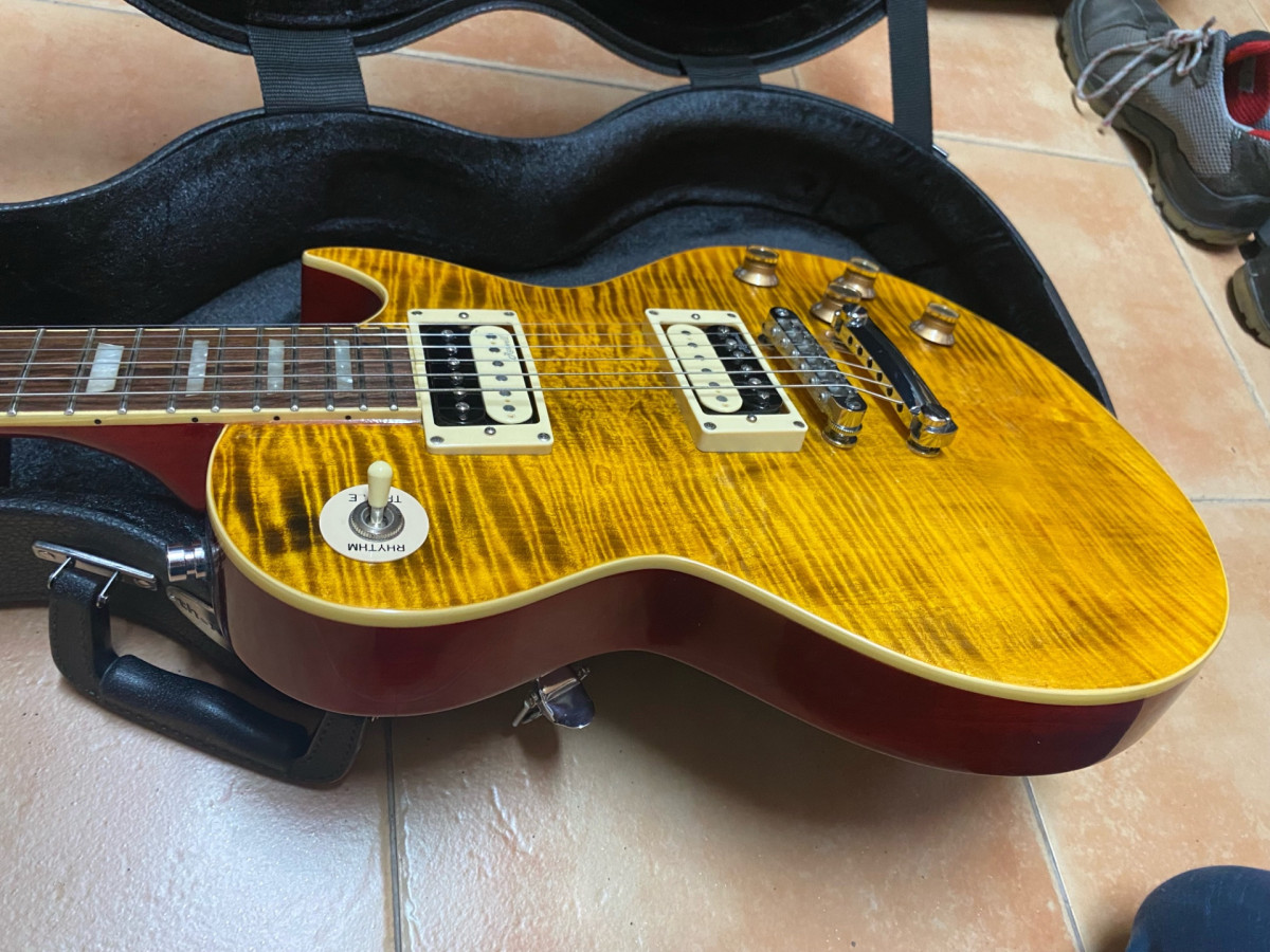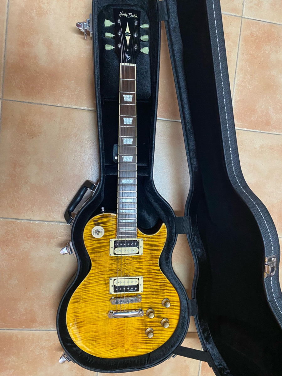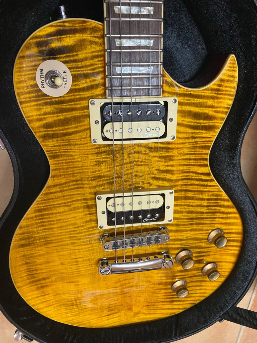 Fácil tocabilidad. Sustantivo incluso sin conectar. Pesó contenido. Ideal para distorsion. Vendo con funda blanda. Si la quieres en funda rígida son +50€