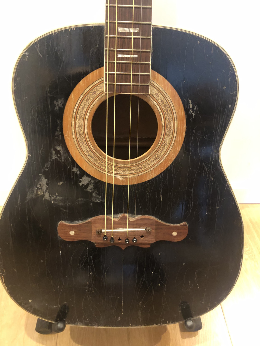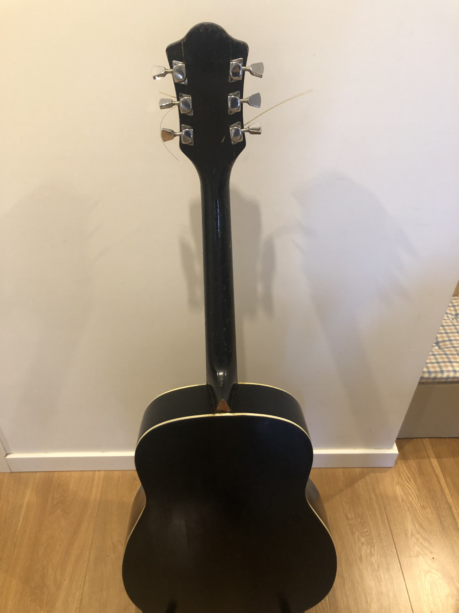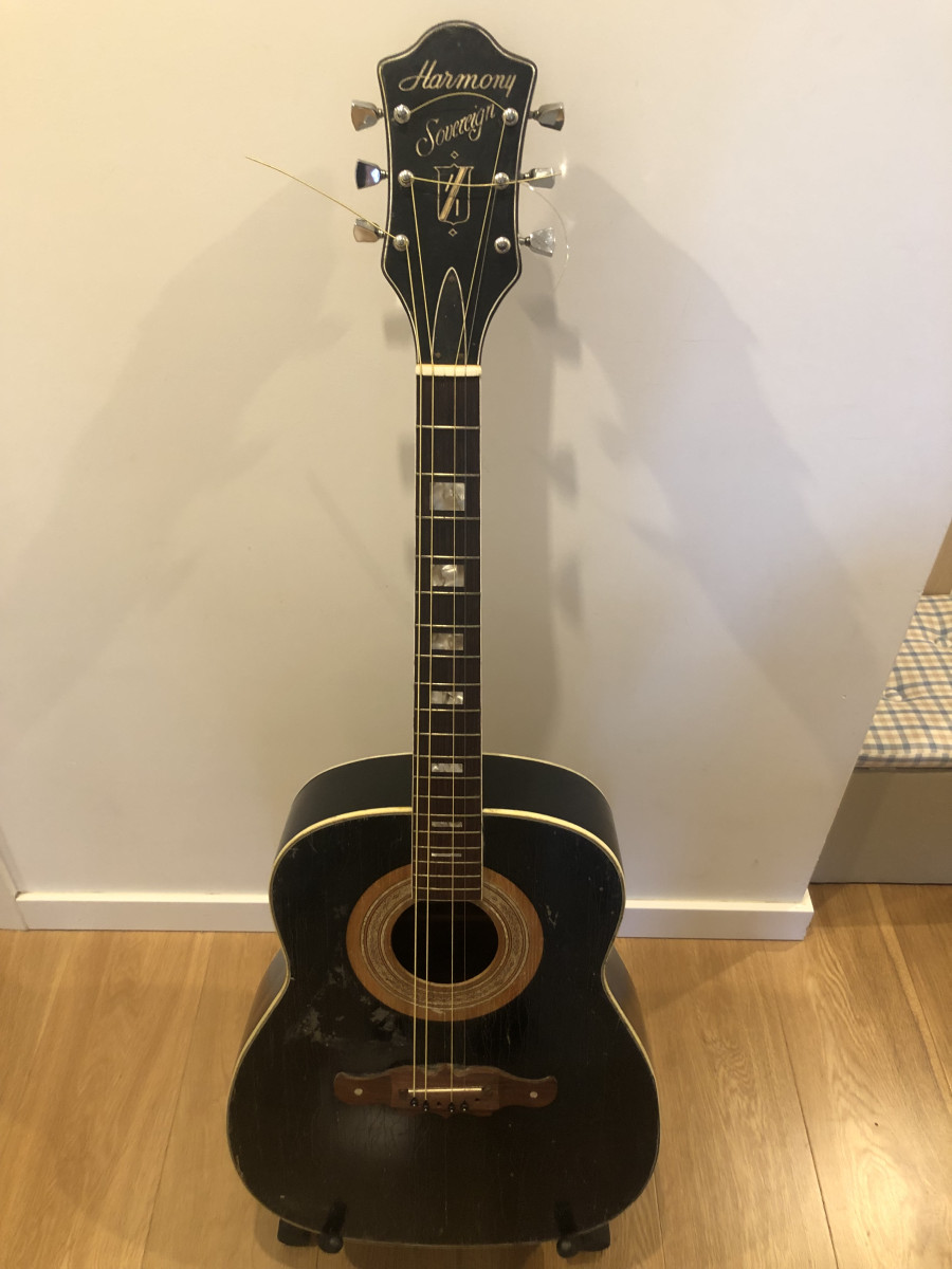 Se vende guitarra Harmony Sovereign fabricada en USA en 1971-1973. Modelo de guitarra raro fabricado solo dos años y conocido por Ryan Adams. Es un proyecto de restauración que necesita más tiempo y dedicación que la que yo le puedo dar. Le faltan los dos golpeadores, pero se pueden comprar. Tiene los aros y la tapa trasera repitandos y con reparaciones de alguna grieta. La tapa delantera como se ve tiene la pintura original muy crackelada. Ideal para algún manitas. Sin estuche ni funda para envío así que mejor recogida en mano en San Sebastián, Bilbao, Pamplona o Zaragoza.
