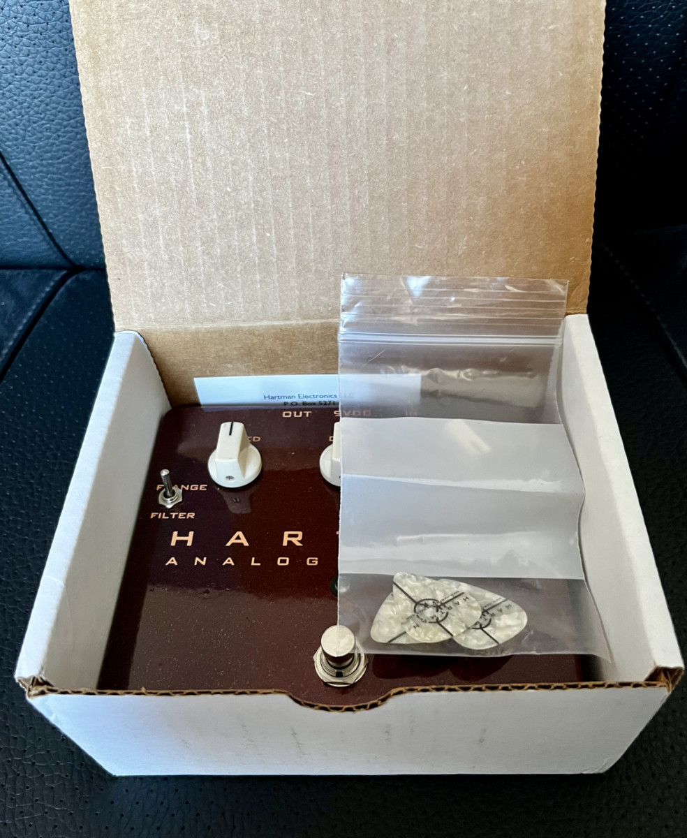 Este pedal es el santo grial de esa serie y está muy buscado, es muy raro que aparezca (la mayoría de HARTMAN FLANGERS se fabricaron a posteriori con el más común chip MN3007).