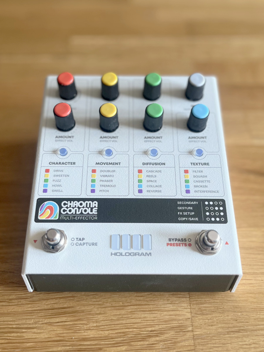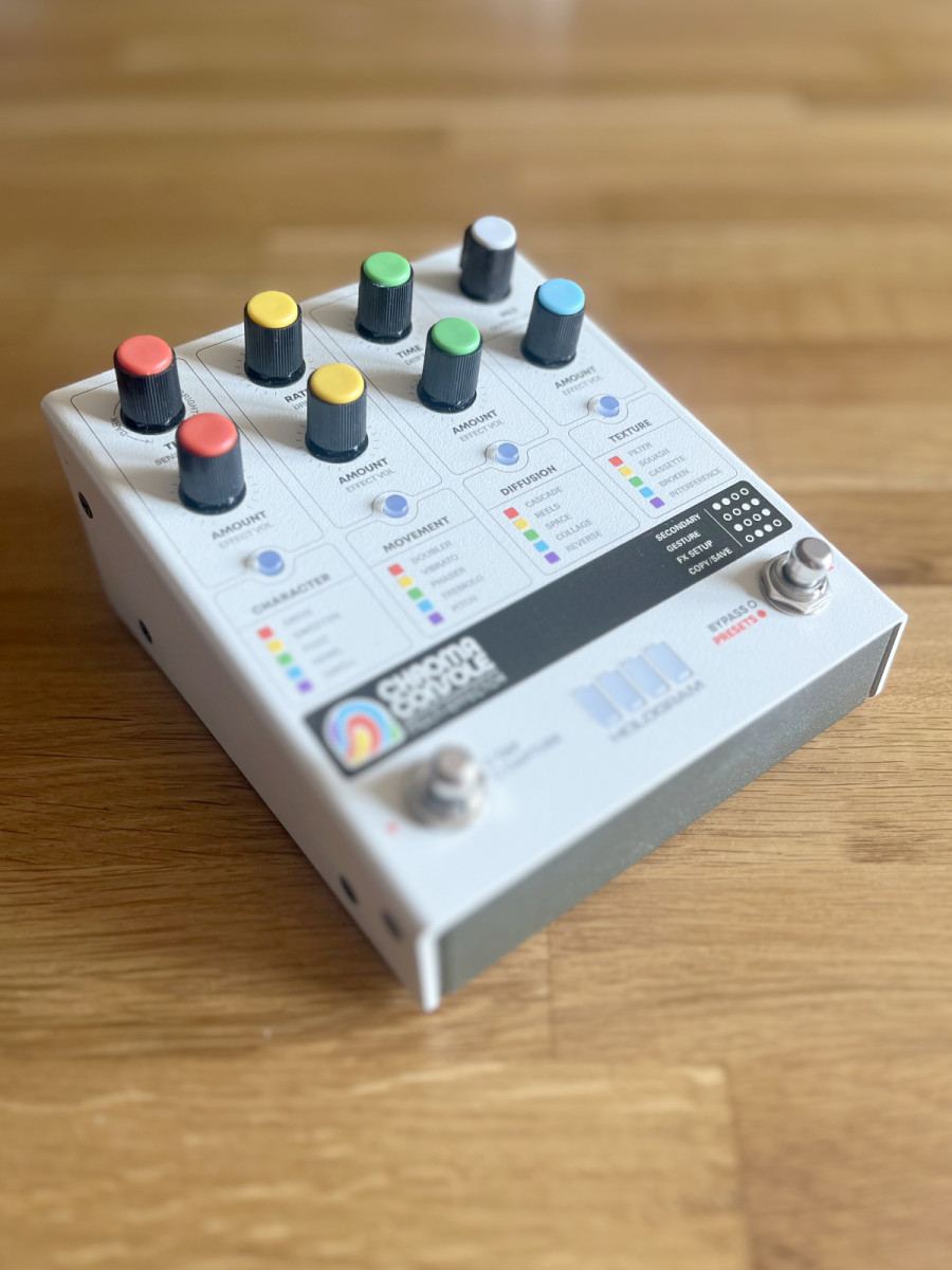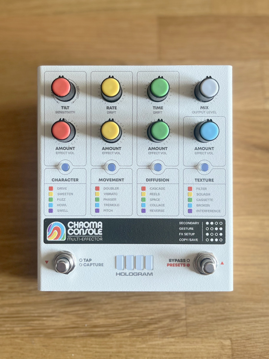 El Chroma Console es un potente pedal multiefectos inspirado en el equipo de grabación vintage — lleno de carácter, calidez y un enorme potencial creativo. Combina la imprevisibilidad y el carácter del material de estudio clásico con funciones modernas y una interfaz intuitiva, perfecto tanto para estudio como para directo.