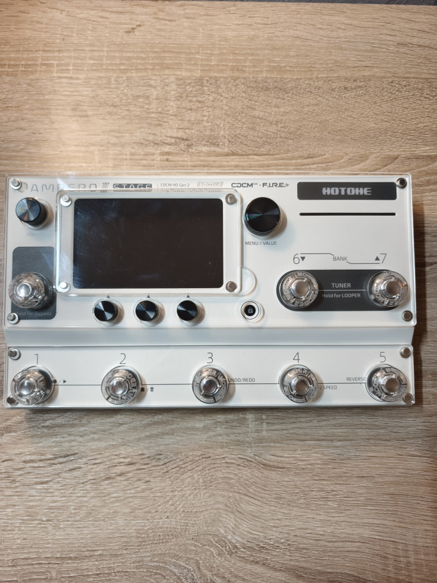 Está prácticamente nuevo, se ha usado en directo un par o tres de veces y siempre con sus protectores marca @acrilicospedaleras (que vienen incluidos y baratos no son). También trae unos toppers marca Mooer.