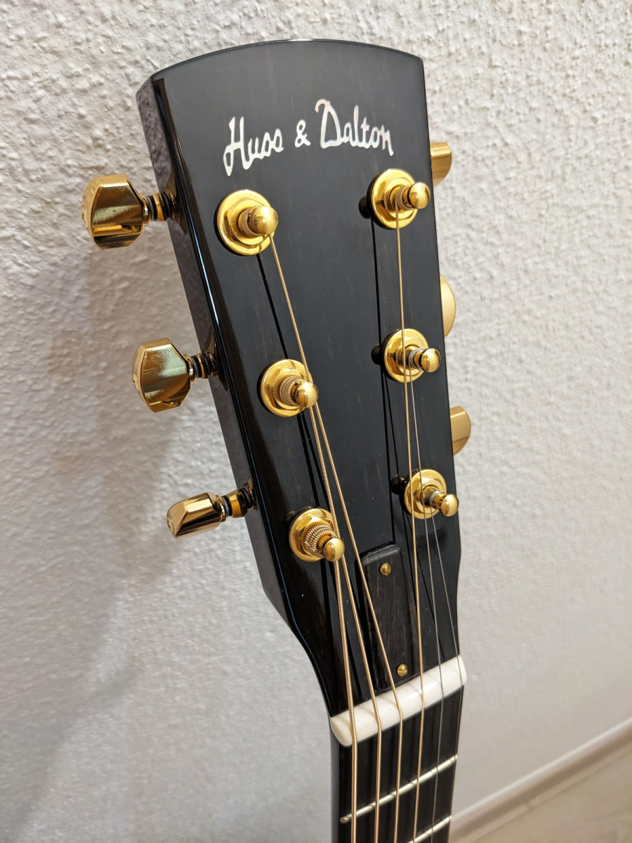Guitarra acústica, de Luthier tipo dreadnought, made in usa, de la marca Huss & Dalton modelo DM fabricada en Virginia en el año 2010. De lo mejor que he tocado, mucho mejor que la mayoría de Martin D18 y D28,D35 que he probado. Super equilibrada y fácil de tocar se nota el mimo en todos los detalles (las fotos no se ven bien por el brillo). Está en perfecto estado como nueva casi sin uso. Única en España, de importación (es una buena oportunidad tal y como están ahora los aranceles en usa, te evitas papeleos, el precio final es mas barato,es fijo y sin sorpresas). Con estuche de la marca y certificado de autenticidad. Es una dreadnought con el fondo y los aros de caoba y una tapa de pícea de Sitka. El clavijero va suavísimo y es preciso, da gusto. Sonido tipo Martín,americano, clásico, pero no tan moderno como las Collings, guitarra de gama alta, comparable a Preston Thompson o Santa Cruz. Tiene un sonido limpio, cristalino, nitidez, afinación estable, es un placer tocarla. Os dejo un par de videos para que os hagáis una idea, al natural suena muy equilibrada y tiene buena respuesta, podéis leer más información en internet en todos los foros hablan muy bien de las Huss & Dalton.