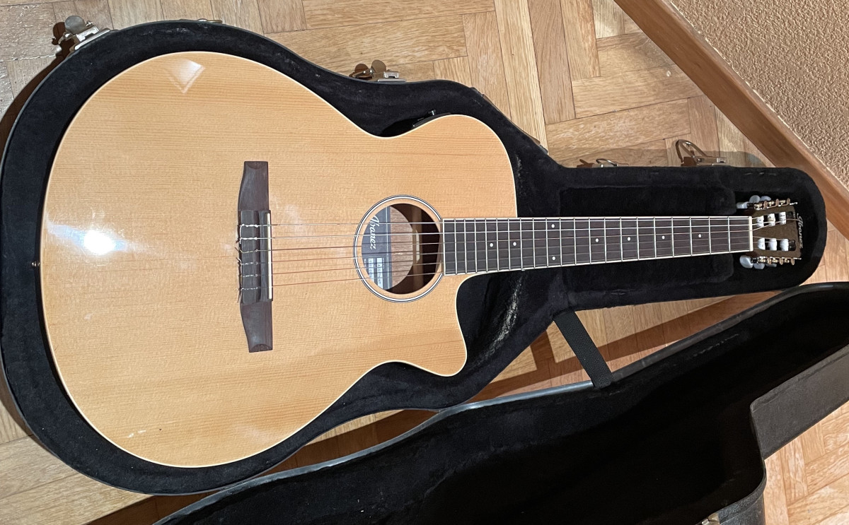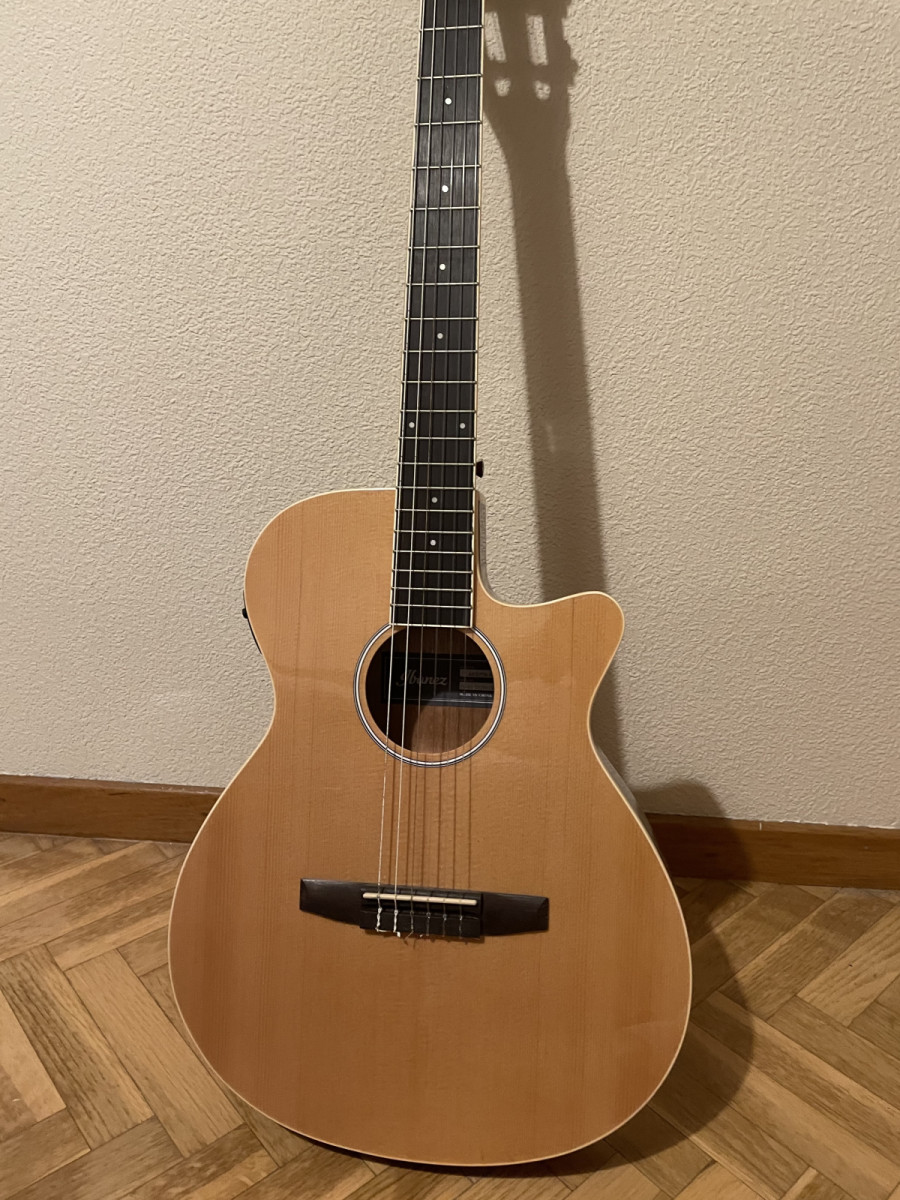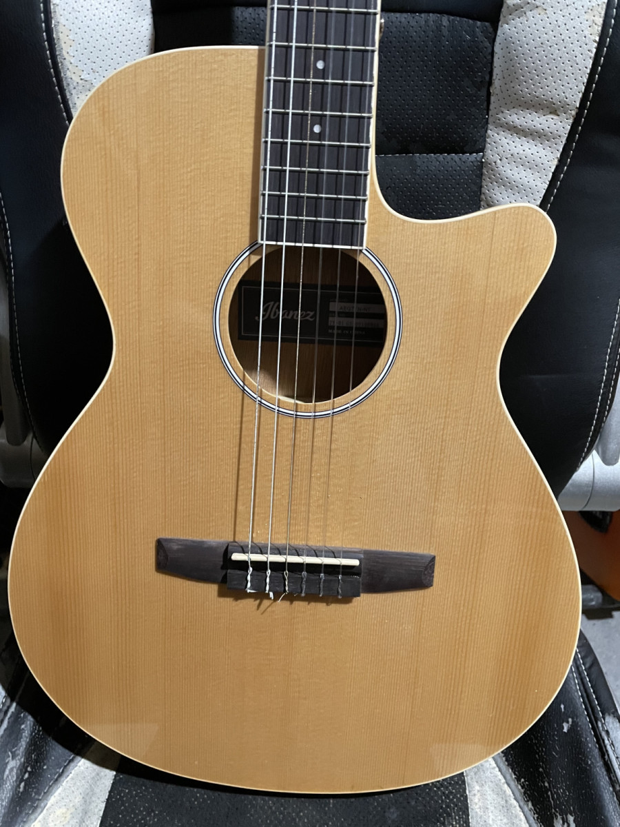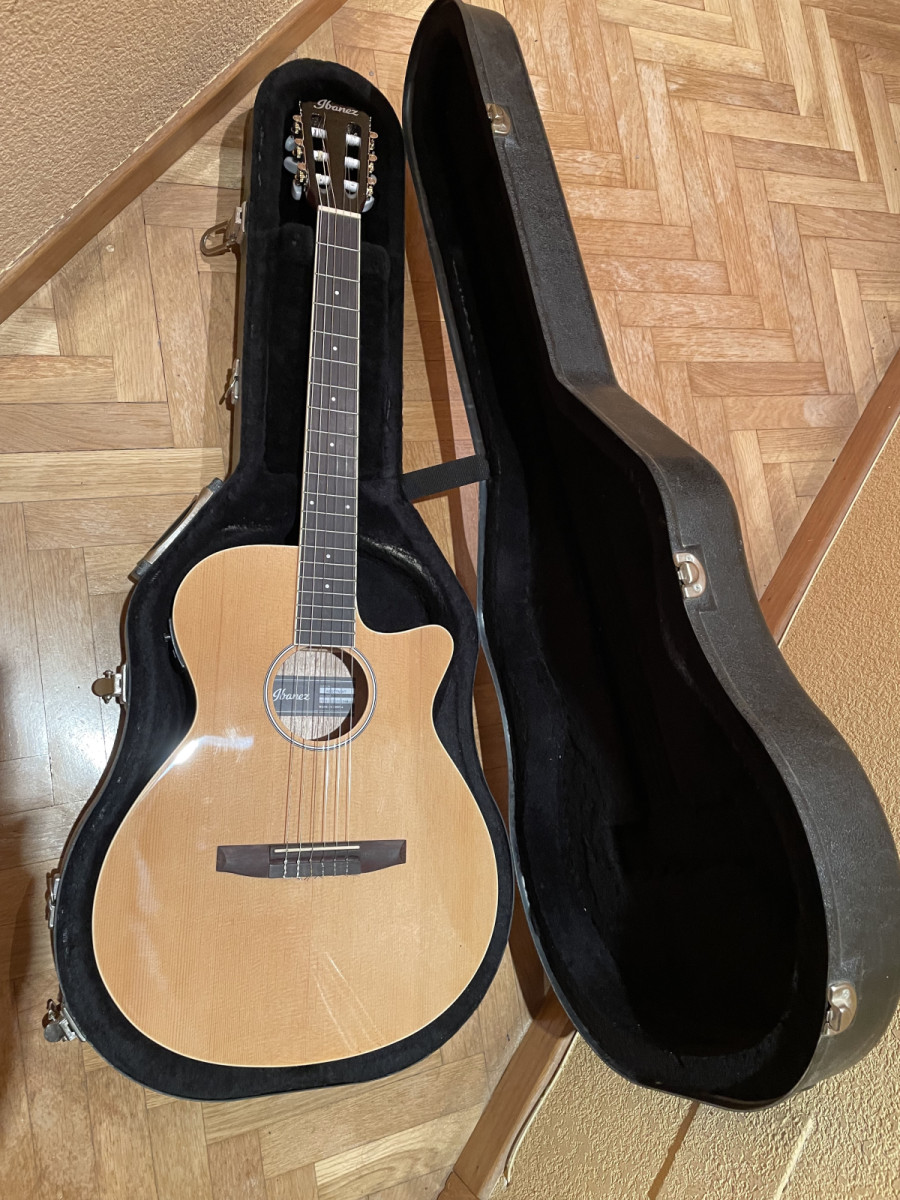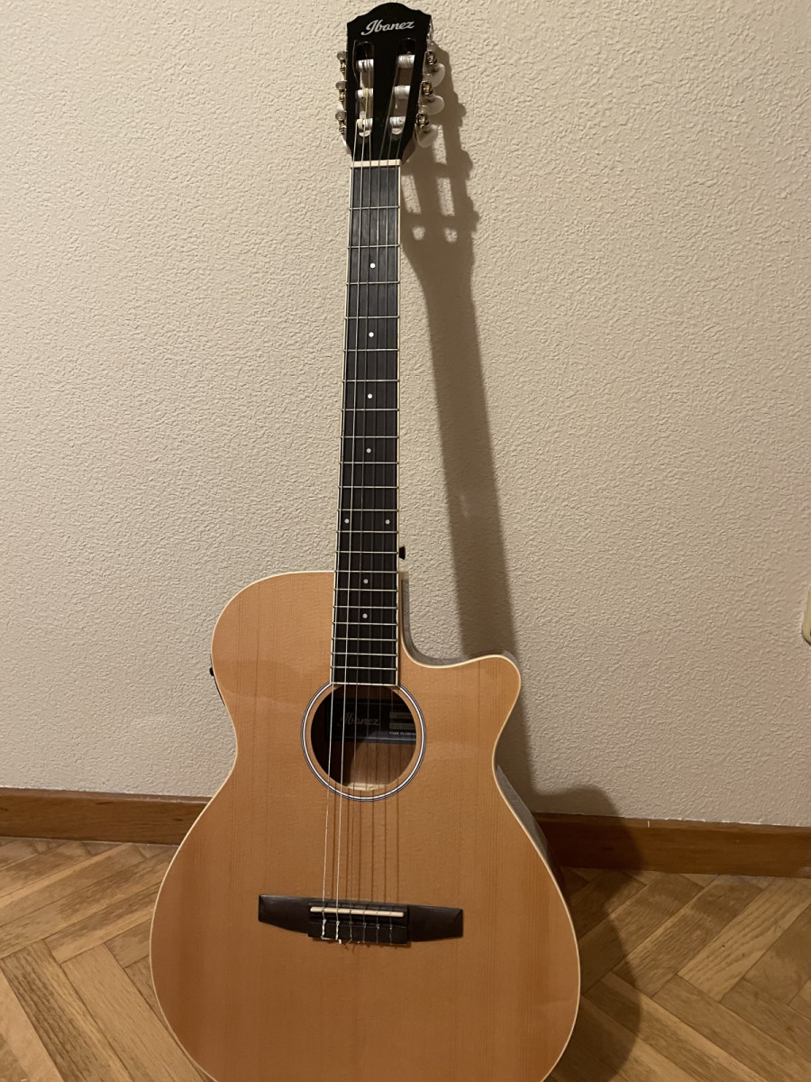 Electroacústica Ibanez AEG7TN con cuerdas de nylon y previo con afinador. Como nueva, apenas se ha usado unas horas y ha estado guardada en estuche.