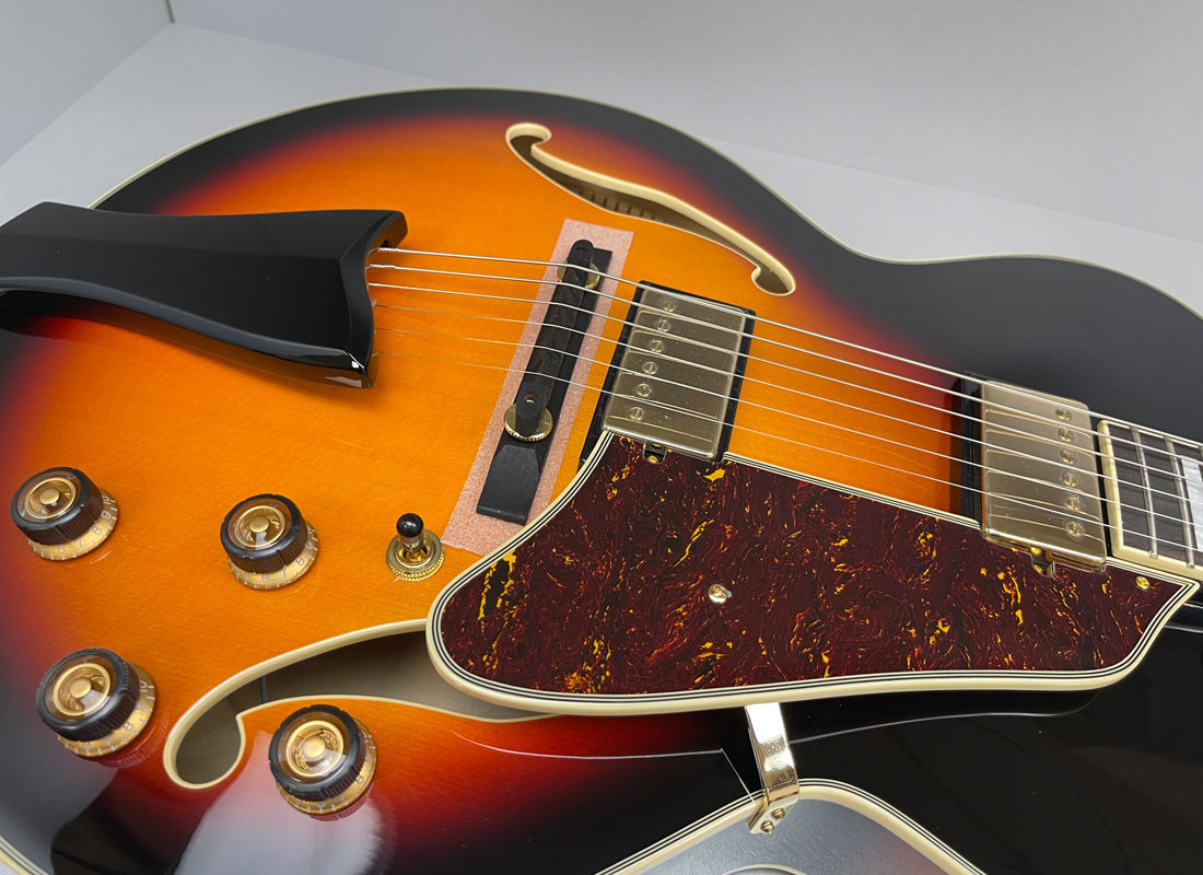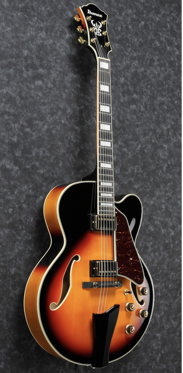 Guitarra eléctrica Ibanez AF95 con un acabado sunburst clásico.
