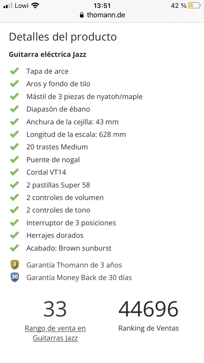 Impoluta, sin ningún tipo de marca o arañazo (no se ha tocado más de 20 horas). Es un guitarrón pero lo vendo por cambio de proyecto musical. (La guitarra nueva está alrededor de los 700 euros).