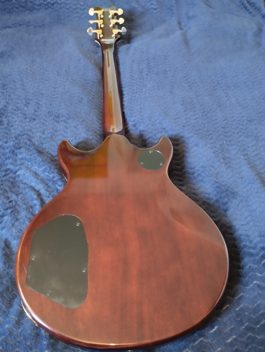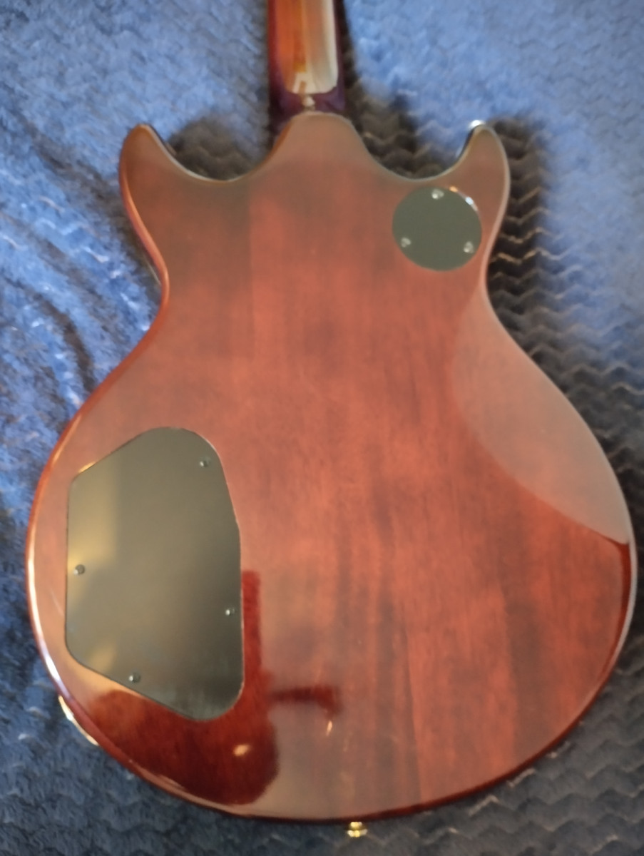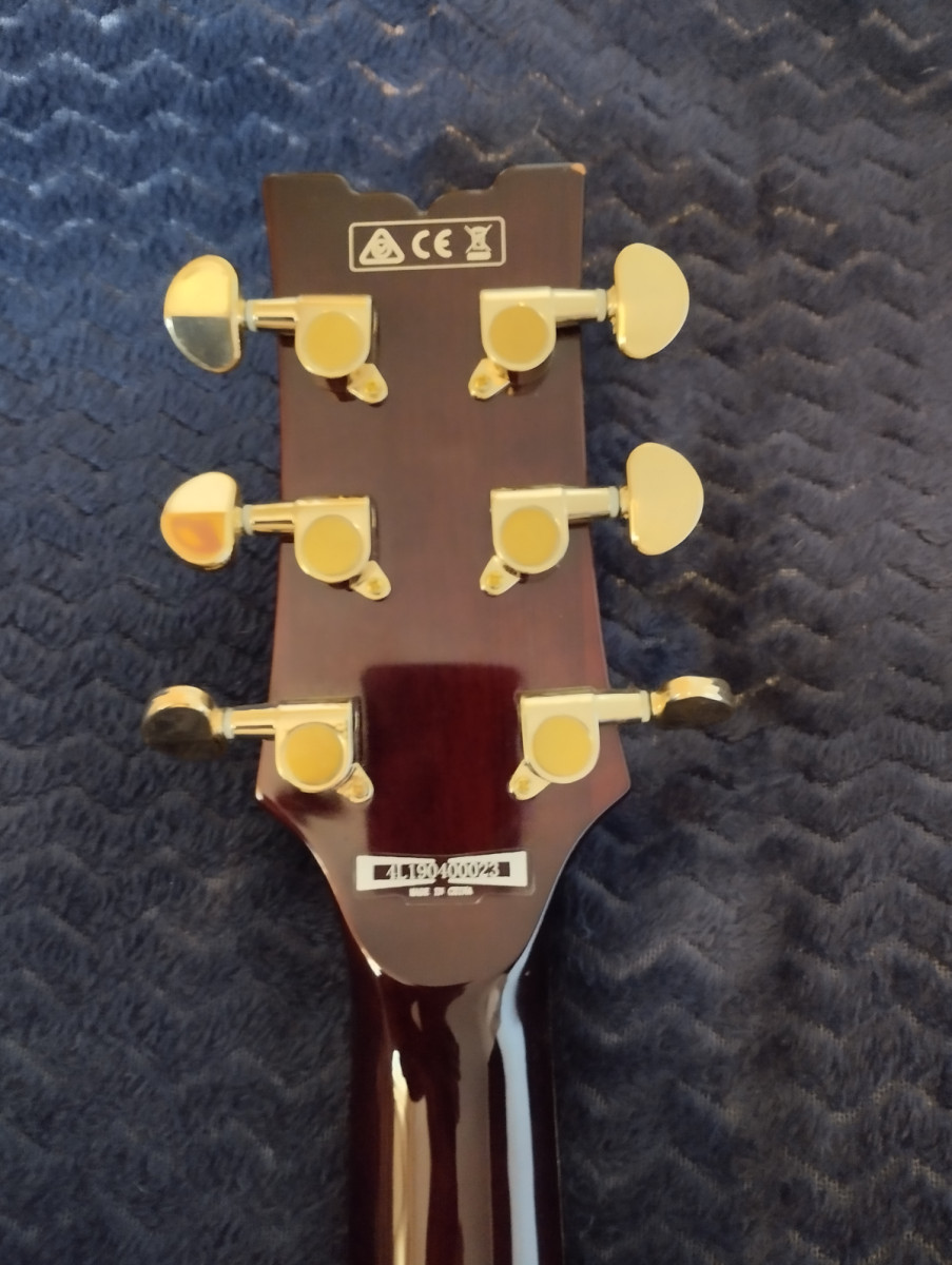 Tiene alguna grieta superficial (del grosor de un pelo) en la junta del mastil con el cuerpo, que les sale a casi todas las guitarras de este tipo de construcción (double cut/Gibson SG) por los cambios de temperatura. Por lo demás, está como nueva.