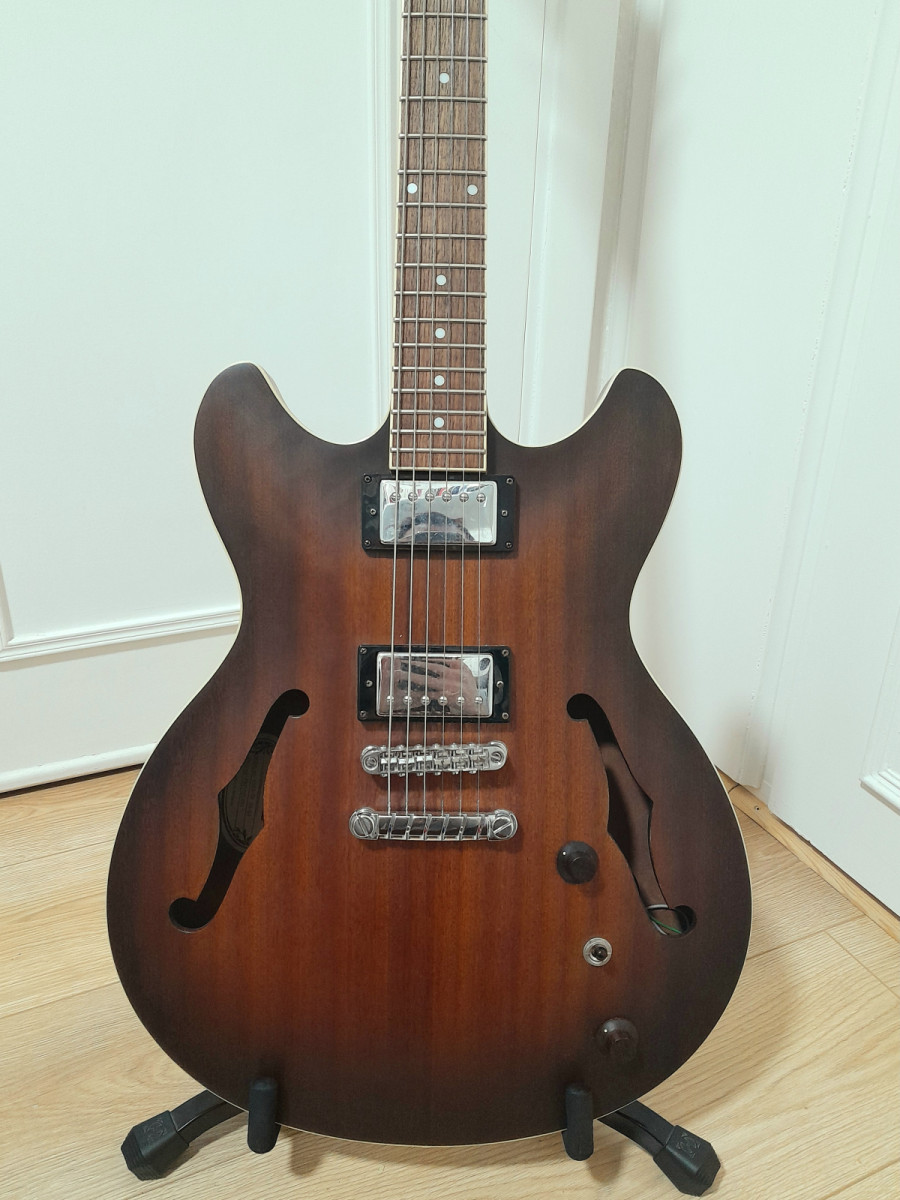 Se vende guitarra eléctrica Ibanez Artcore AS53 mejorada con humbuckers Ibanez ACH, que llevan los modelos superiores a ésta. Guitarra como nueva, sin golpes ni arañazos y con los trastes al 100%.
