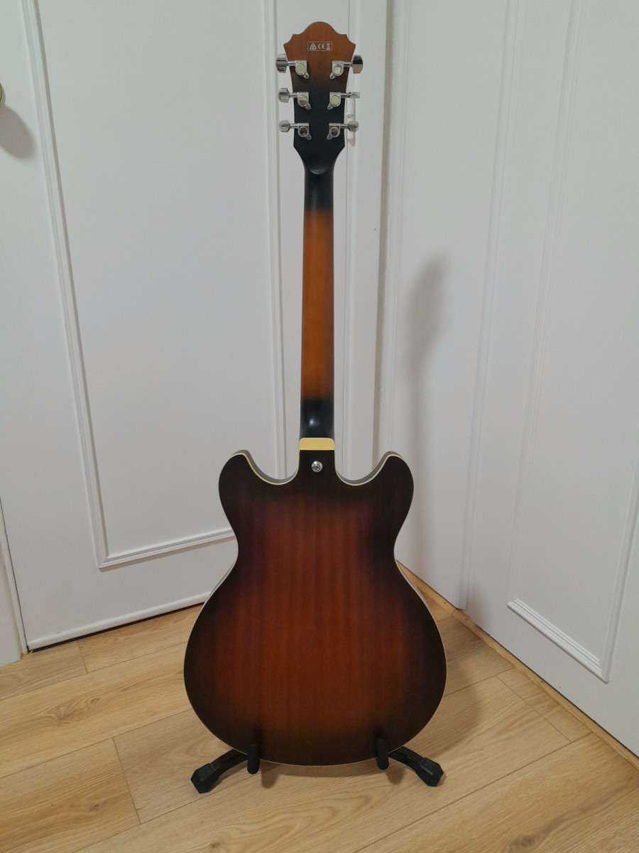 Cuerpo semi hollow tipo Epiphone / Gibson 335 que es ideal para tocar Jazz o Blues.