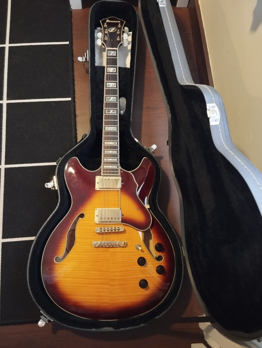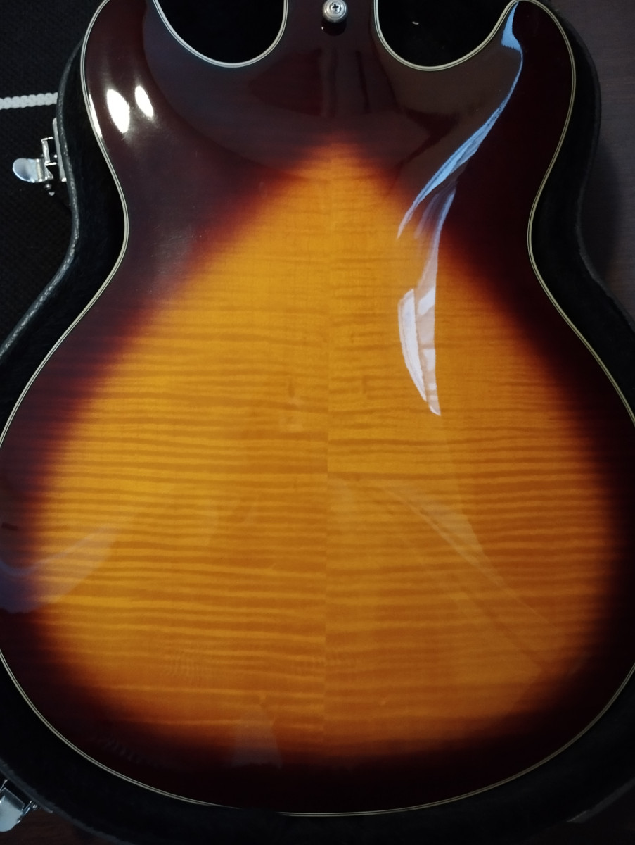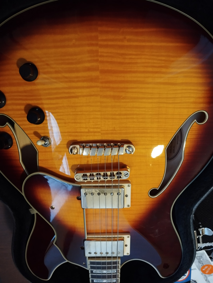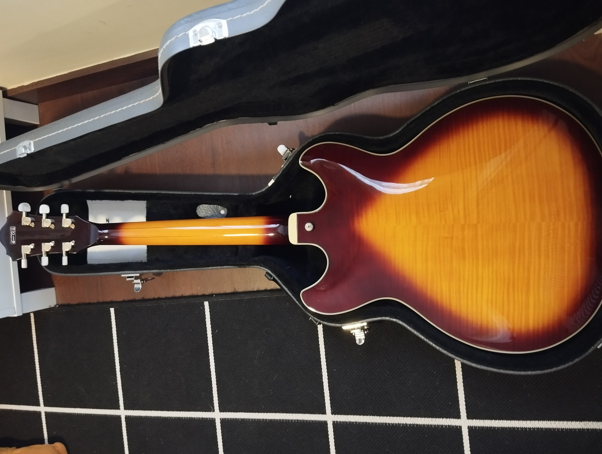 Guitarra eléctrica semihueca o semihollow, en un estado excelente y muy bien mantenida. Trastes al 95%, bien afinada y con todos sus componentes funcionando. Va con su estuche a medida. Se puede ver y probar en Sevilla o Málaga Trato en mano. Mucha información en web. Destaco la versatilidad gracias en gran medida a sus pastillas super 58 custom y lo ergonómica que es... Podría admitir cambio por guitarra stratocaster con ajuste económico arriba abajo....