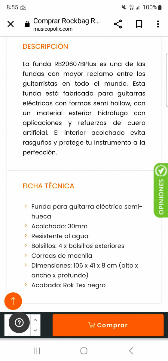 Características declaradas por el vendedor