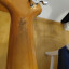 La compré para hacerla HH, pero a la hora de la verdad me ha dado pereza, sobre todo fresar el hueco para la pastilla del mástil y las pastillas "single" no son para mí. Tiene marcas en la pala, en la parte posterior del mástil y en la base, que disimulé con laca de uñas. Los trastes están ligeramente marcados, pero ni se nota al tacto. Además son de acero y jumbo, con lo cual hay trastes para rato.