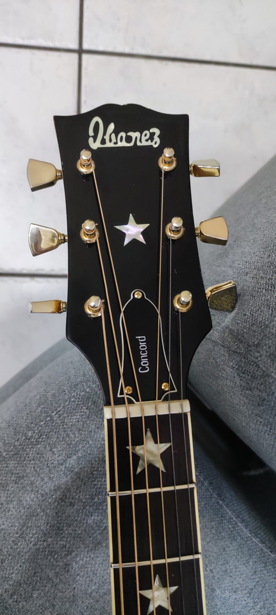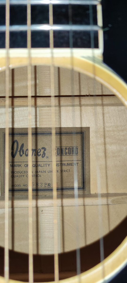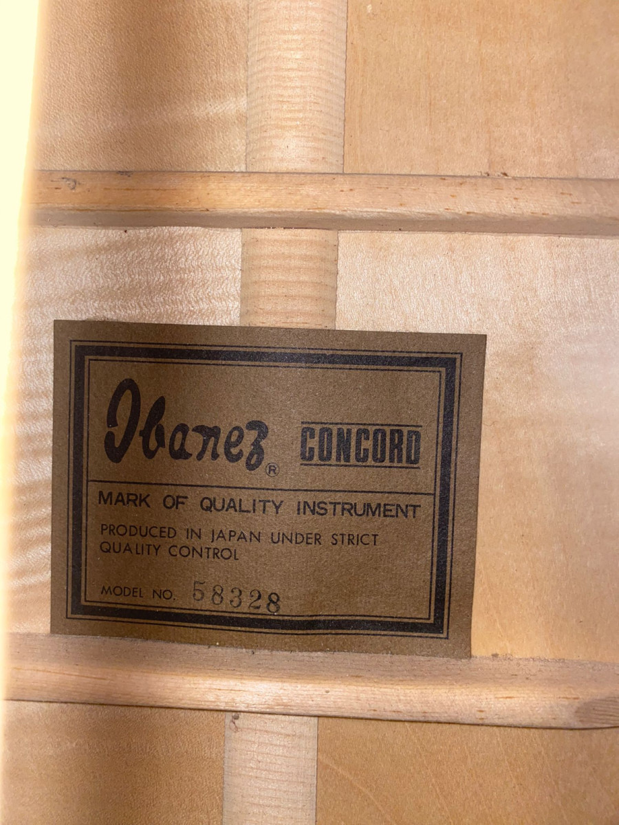 Ibanez Concord 58328 Natural Blondie 1976 fabricada en Japón, este tipo de guitarra nació sobre el diseño 754 pero con maderas completamente diferentes, mucho más valiosa, muy clara, una verdadera rareza, está en excelentes condiciones a pesar de los años como se puede ver en las fotos.
