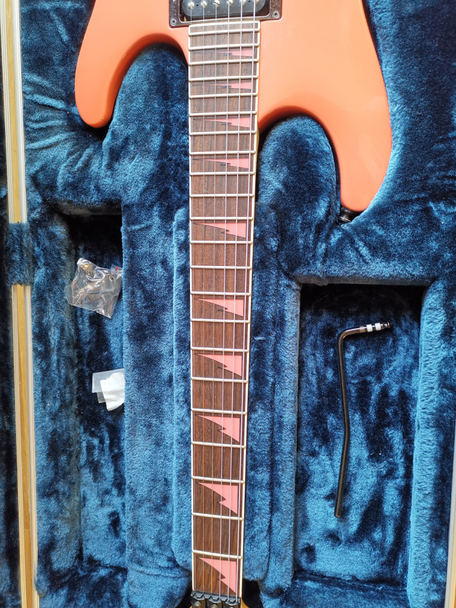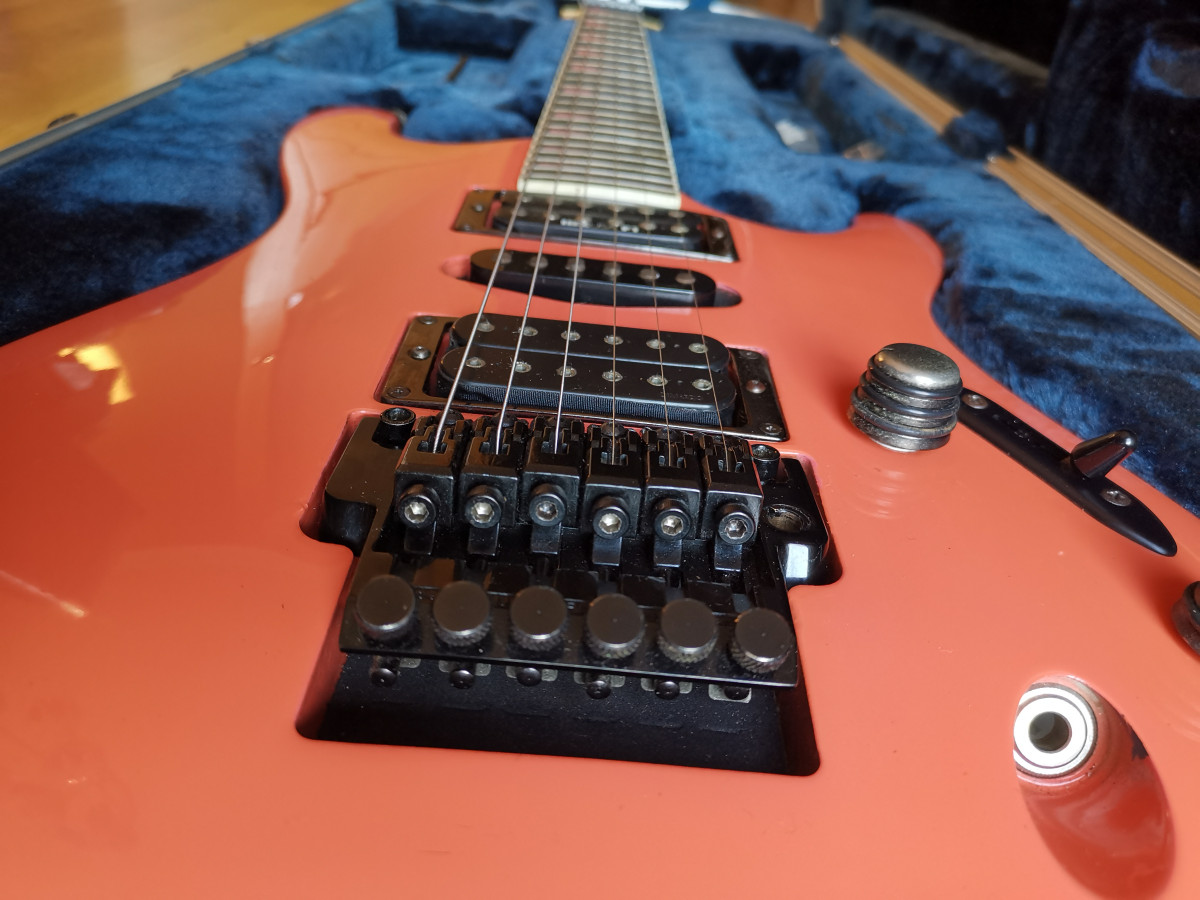 Vendo esta increíble Ibanez FGM 100 modelo signature de Frank Gambale, color pink salmon. La guitarra es del año 1993 y está totalmente original salvo por los enganches de la correa, aunque entrego los originales, así que toda la guitarra está intacta, pastillas etc... Es una joya de la que me desprendo por falta de tiempo, así que busca una nueva casa, o simplemente un coleccionista que sepa apreciar lo que compra.