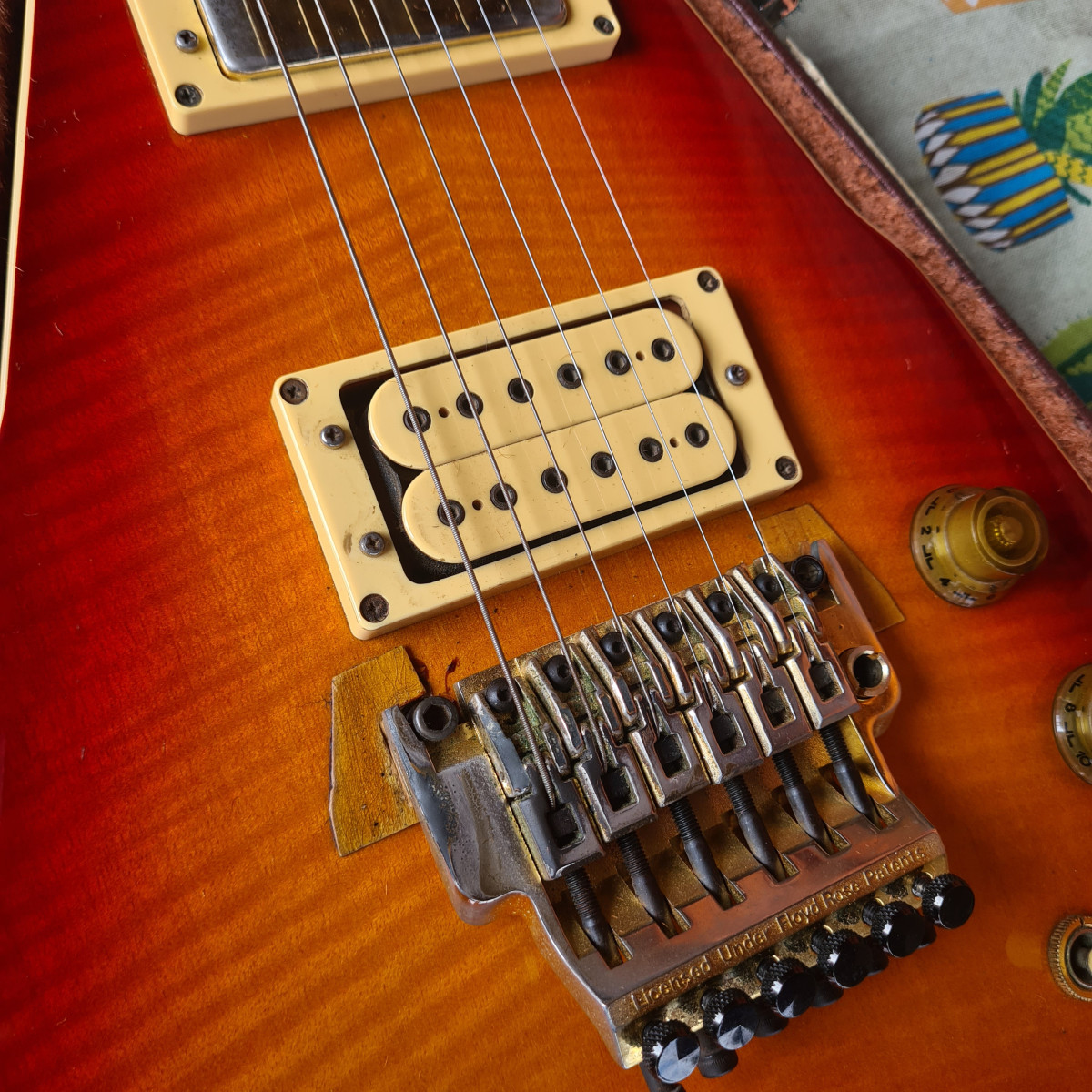 Modelo RR550 V. Muy buen estado general. Conserva todas sus piezas originales excepto el puente que se sustituyó por un floyd rose. Sin modificaciones irreversibles y realizado por luthier. Estuche original.