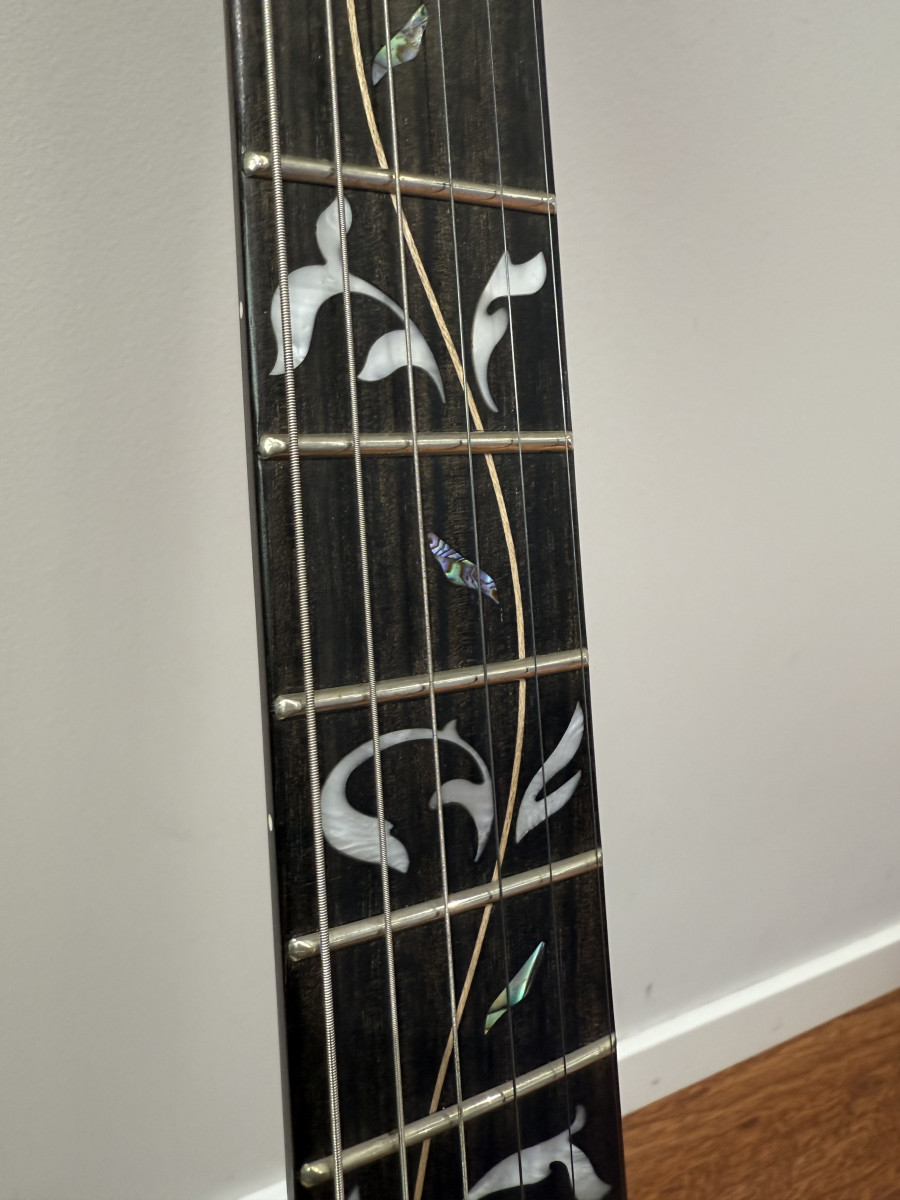 24 trastes Jumbo. Pastillas DiMarzio Evolution con un control de tono y un control de volumen, selector de 5 posiciones. Puente Edge.