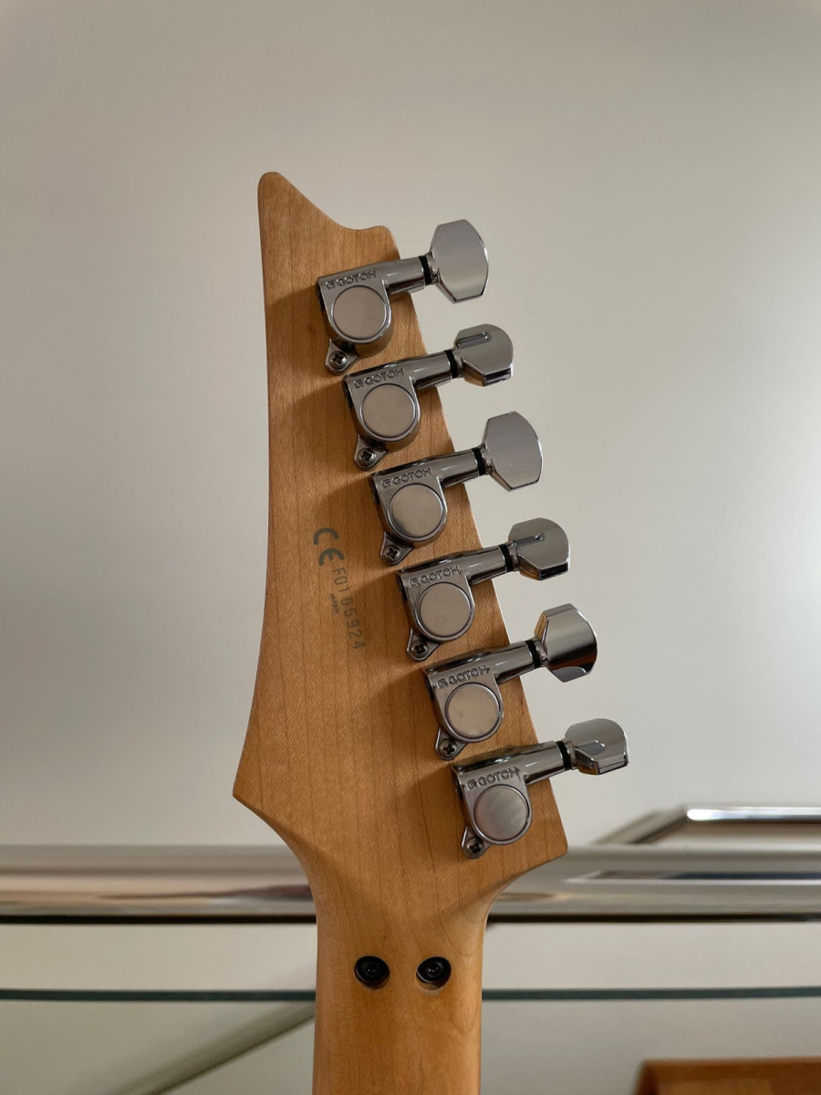 La guitarra es del 2001 hecha en la fábrica Fujigen Gakki Japón una fábrica muy preciada por su sus construcciones de alta calidad
