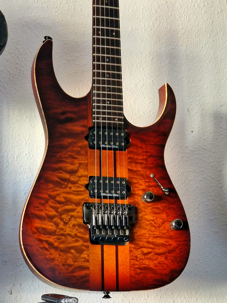 Guitarra Ibanez Prestige RGT320Q made in Japan, incluye palanca Ibanez y estuche Carvin vintage