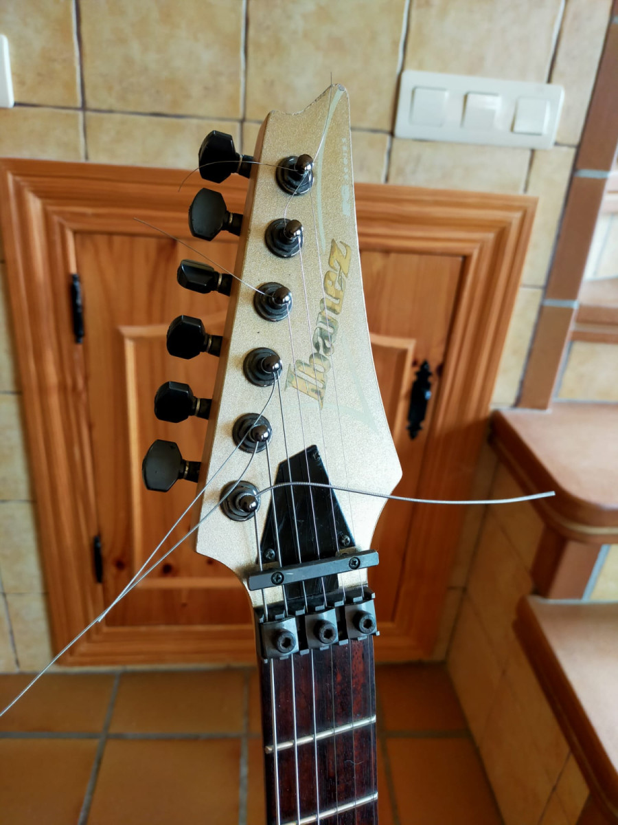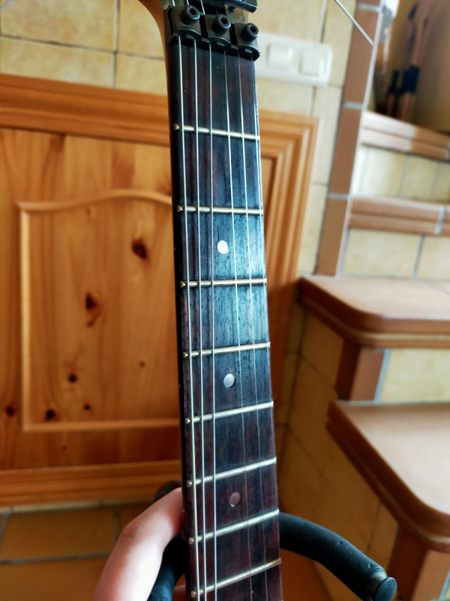 Ibanez RG550EX hecha en Japón en el 2000. Buen estado. Algo más amarilleada de lo que se aprecia en las fotos.