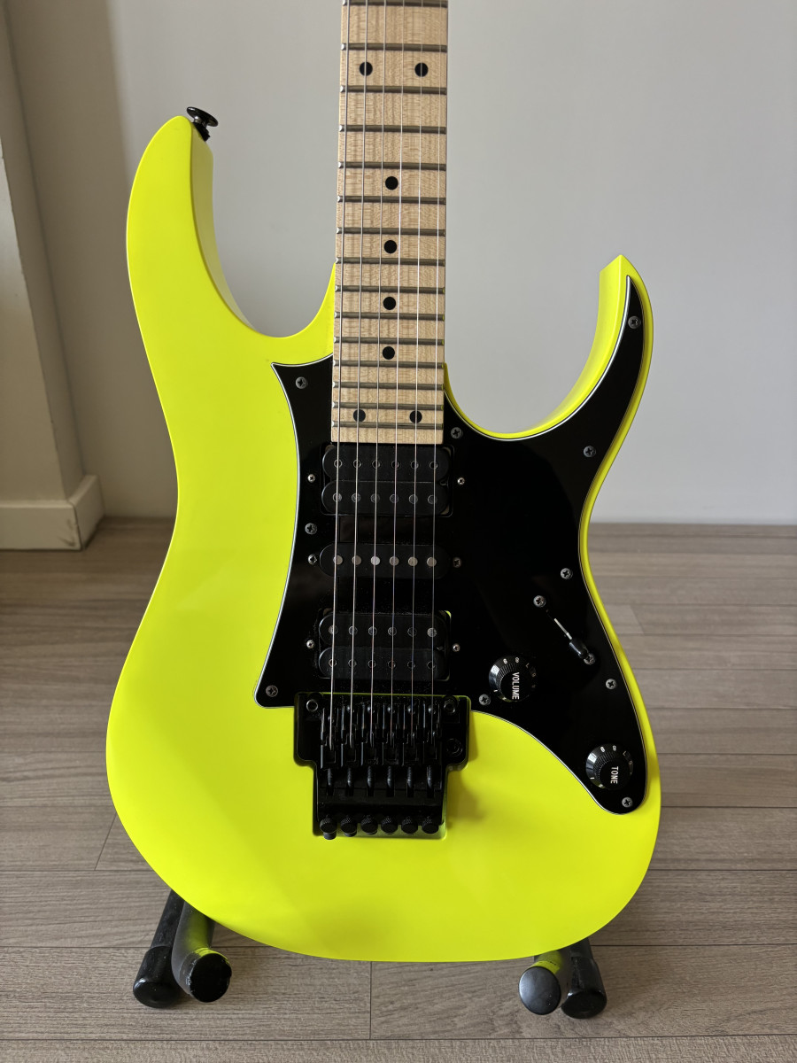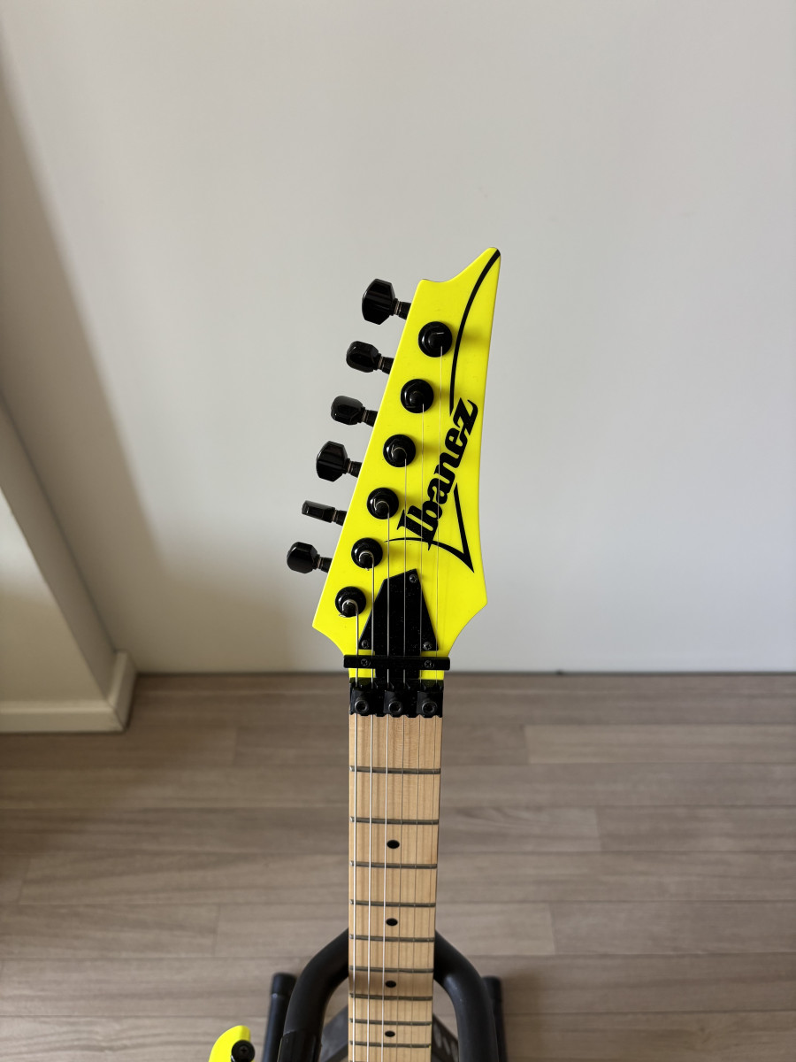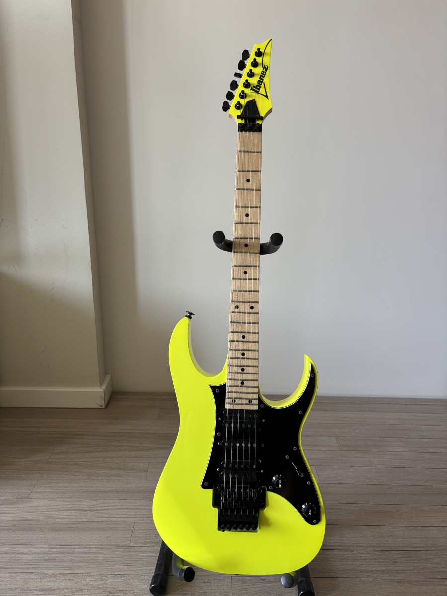 Guitara eléctrica Ibanez RG550 japonesa en muy buen estado, comprada en septiembre de 2023. Es una guitarra llamativa, en color Desert Yellow que destaca bastante.