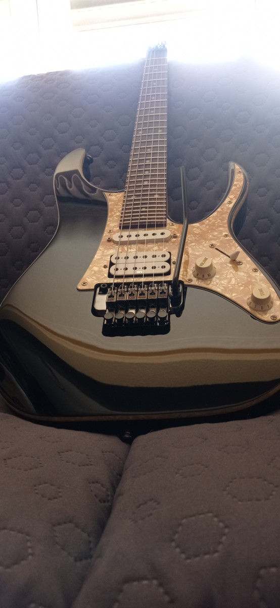 Buenas compañeros, vendo/ cambio esta guitarra extremadamente rara de ver, modelo Rg 550 xh del cual se fabricaron pocas unidades, es completamente nueva a estrenar, procedente de excedente de tienda. Monta puente zero Edge 2, mástil wizard 3 piezas, módulo ibanez de emulación de pastilla del mástil ya que tiene 30 trastes, no 22 ni 24. Y pastillas infinity con electrónica original.