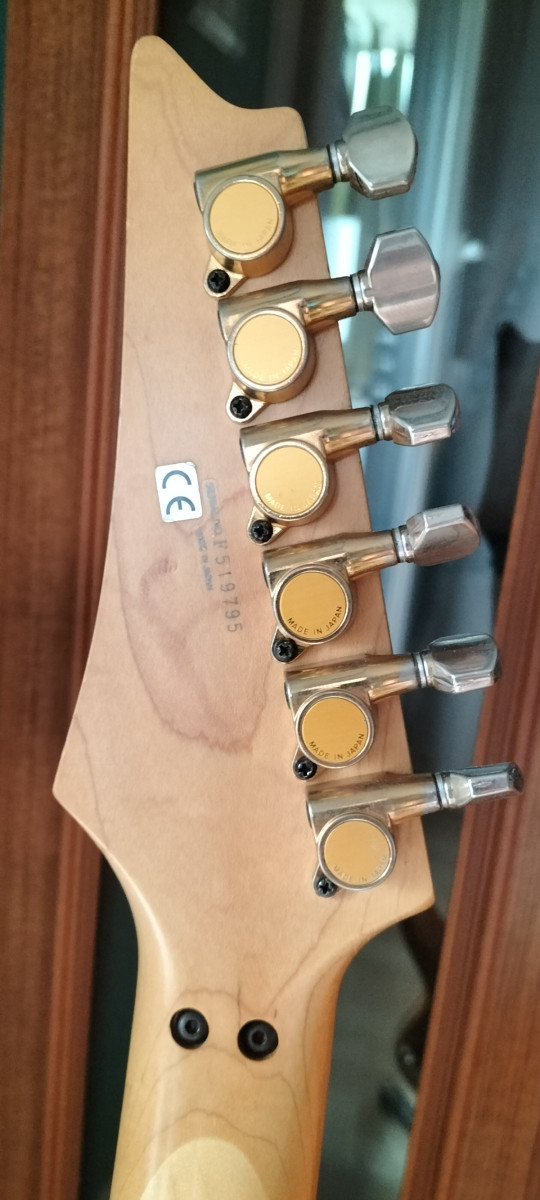 El tacto y sonido son lo que acostumbra a darte ibanez japan en los 90. Es espectacular. Puente lo pro edge y clavijas gotoh.