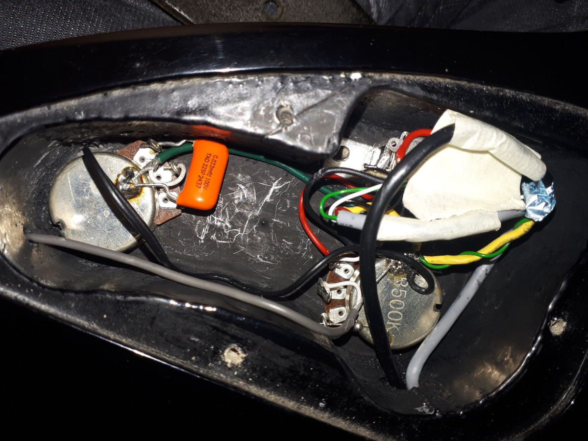 La guitarra está en muy buen estado, salvo el golpe de la base. Tiene la electrónica cambiada, selector de 3 posiciones y pastillas de una PRS SE Custom. Podría dejarla en 175€ con pastillas igual de chinas que las originales, pero yo creo que vale la.pena pagar la diferencia. No me interesan cambios y no envío. Se puede preguntar (con conocimiento) y probarla.