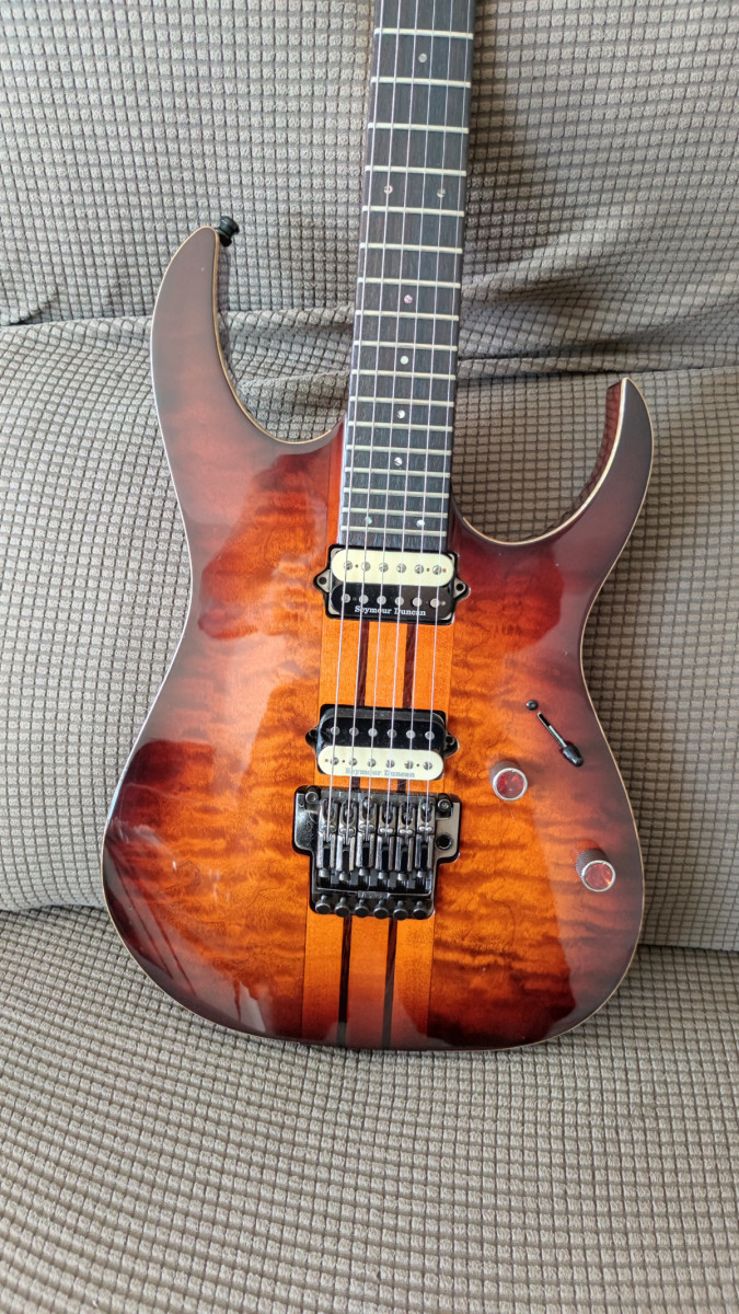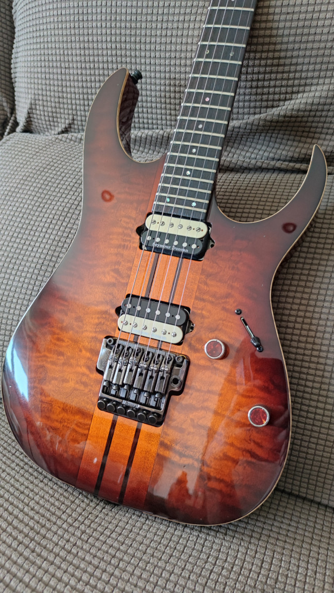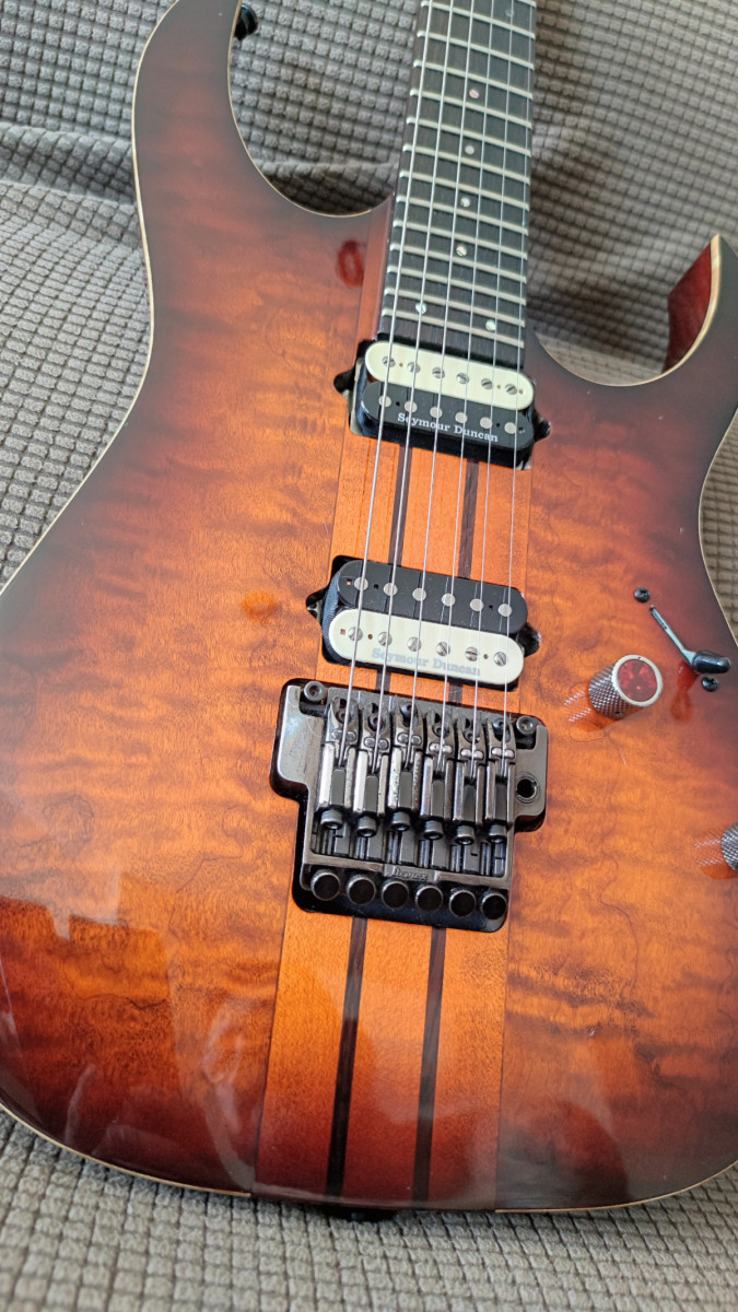 Posibles cambios: 24 trastes, sin Floyd aunque si tremolo(Charvel DK24) 7 cuerdas puentes fijos y 25,5.