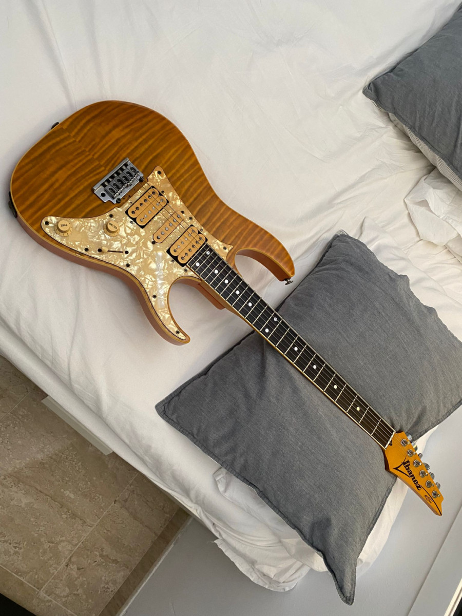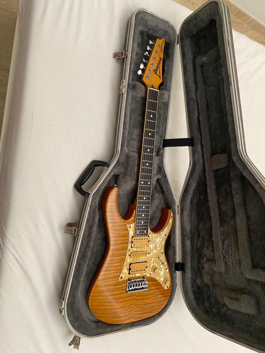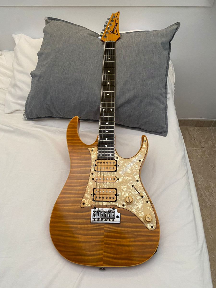 Pongo a la venta esta Ibanez RT Series, antigua guitarra de Andy Timmons. La guitarra está en perfectas condiciones, la pongo a la venta por falta de uso. Por mi trabajo resido fuera de mi domicilio casi todo el año, y no tengo tiempo para más guitarras. Todo original, ninguna modificación y ha sido revisada por luthier. Tiene dos toques, puramente estéticos. Puedo compartir más fotos y/vídeos con cualquier interesado.