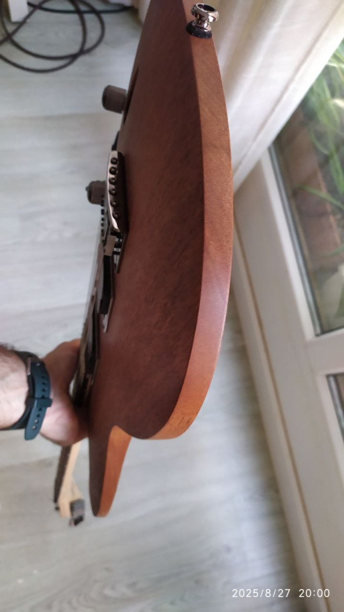 Respecto a la estética, es algo personal, pero el acabado en madera con poro abierto ni desentona ni pasa de moda. Como la tengo poco tiempo, no ha sufrido desgaste, pero es de esperar que si tocas con ella durante años, vaya mostrando con el tiempo señales de uso, lo cual no me importaría si me la quedara. Otra cosa es el "relic" artificial, que personalmente no entiendo.