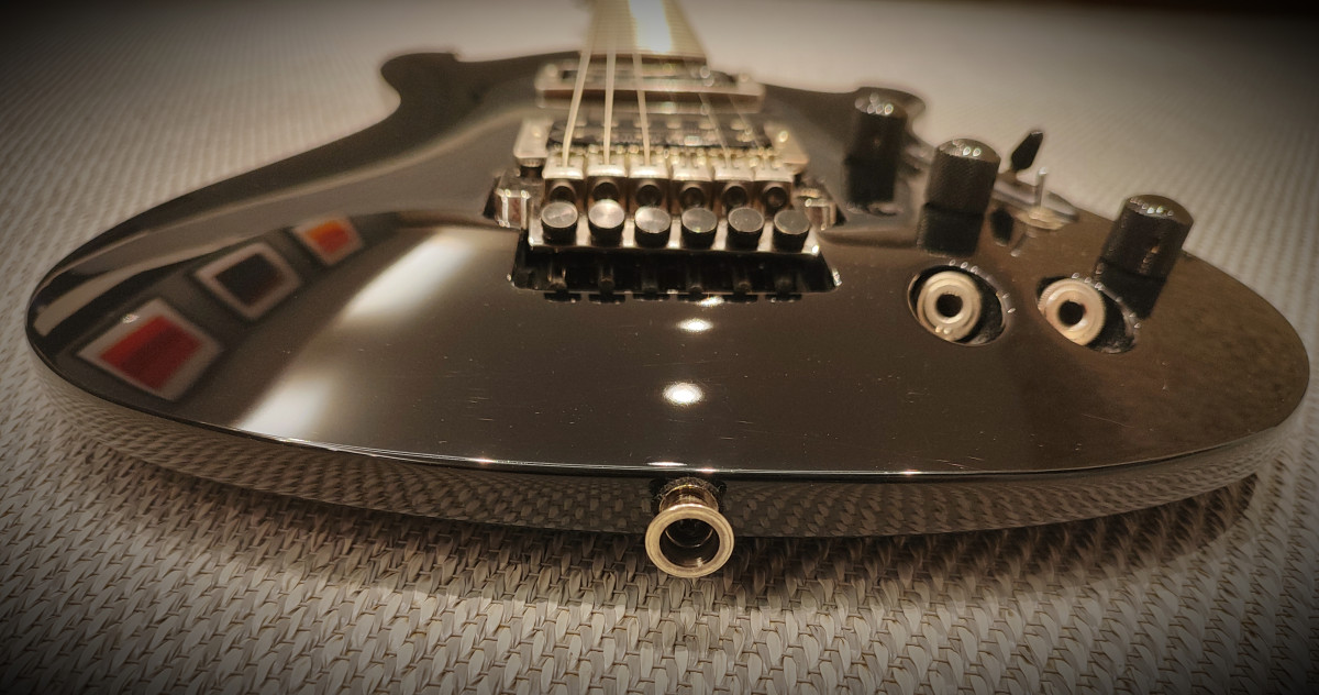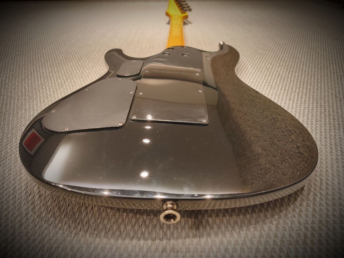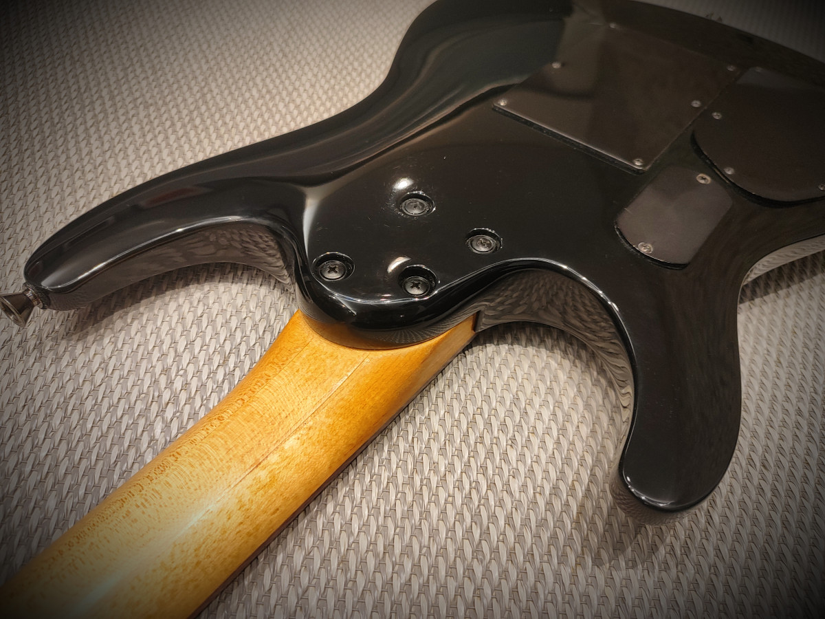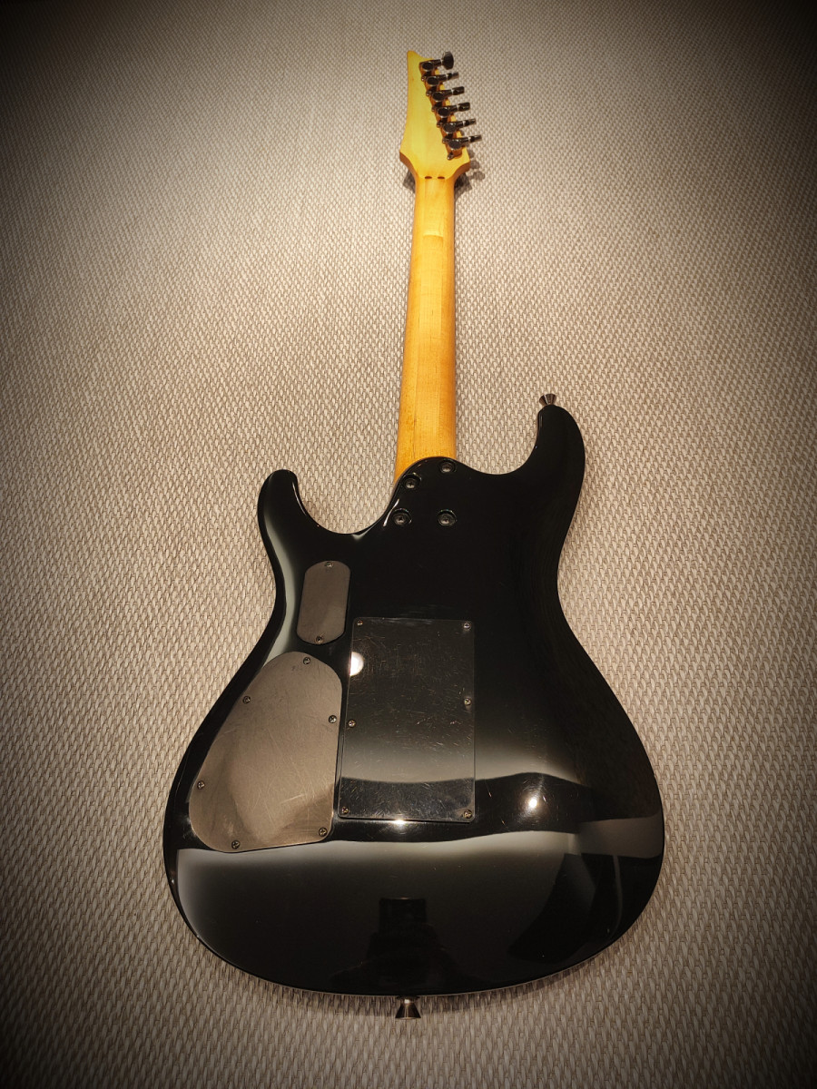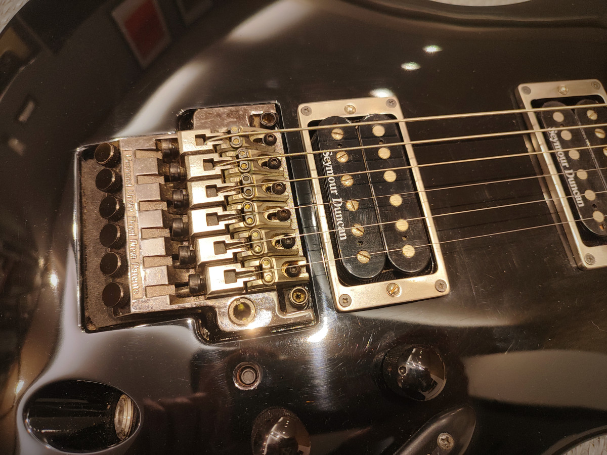 Ha sido repintada de negro profesionalmente en La Guitarrería (Sabadell) y mejorada con un set de Seymour Duncan JB Trembucker y Jazz.